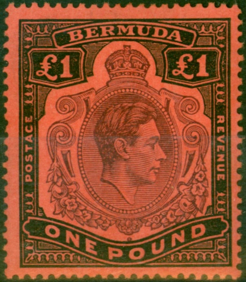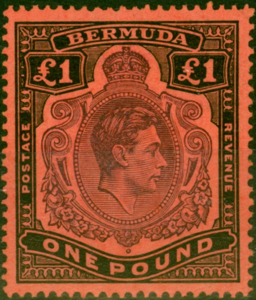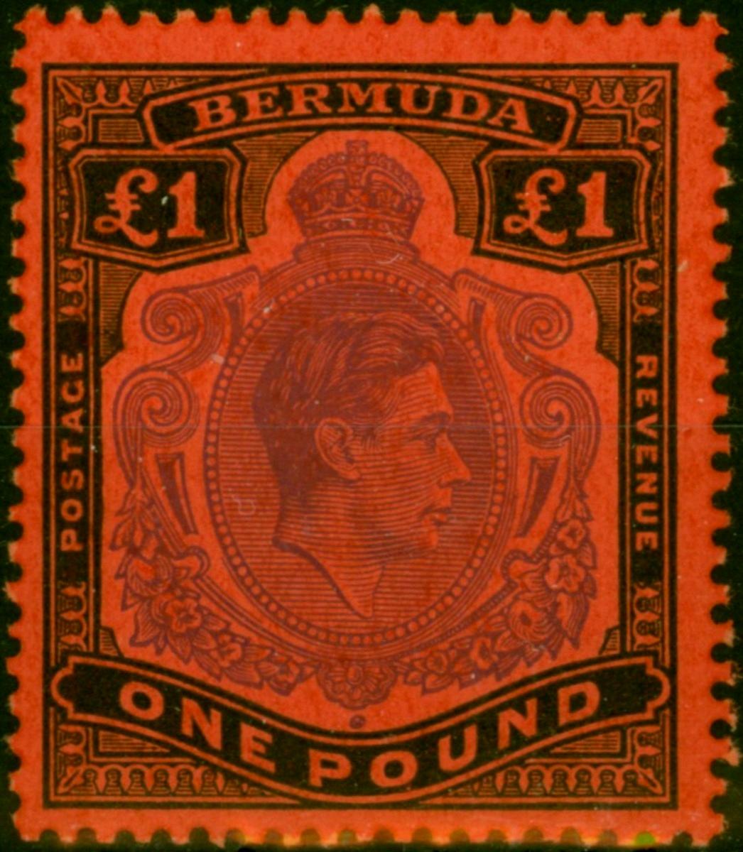 Bermuda 1943 £1 Deep Reddish Purple & Black-Pale Red SG121c V.F MNH (7)