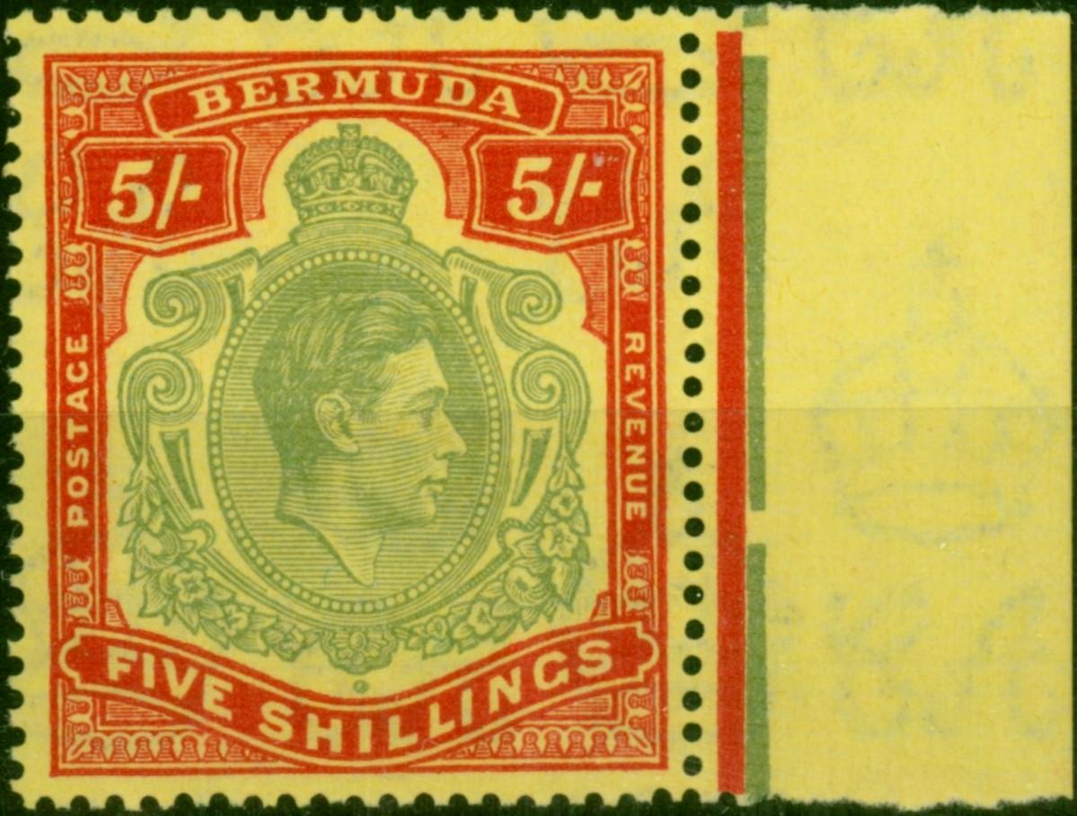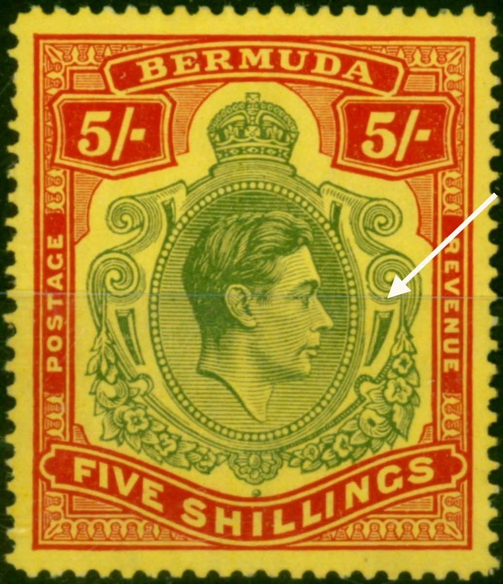 Bermuda 1950 5s Yellow-Green & Red-Pale-Yellow SG118f P.13 V.F MNH