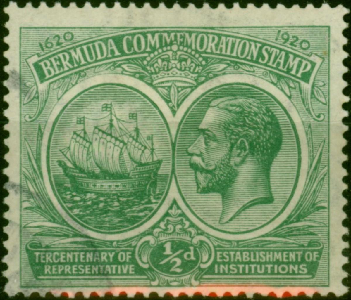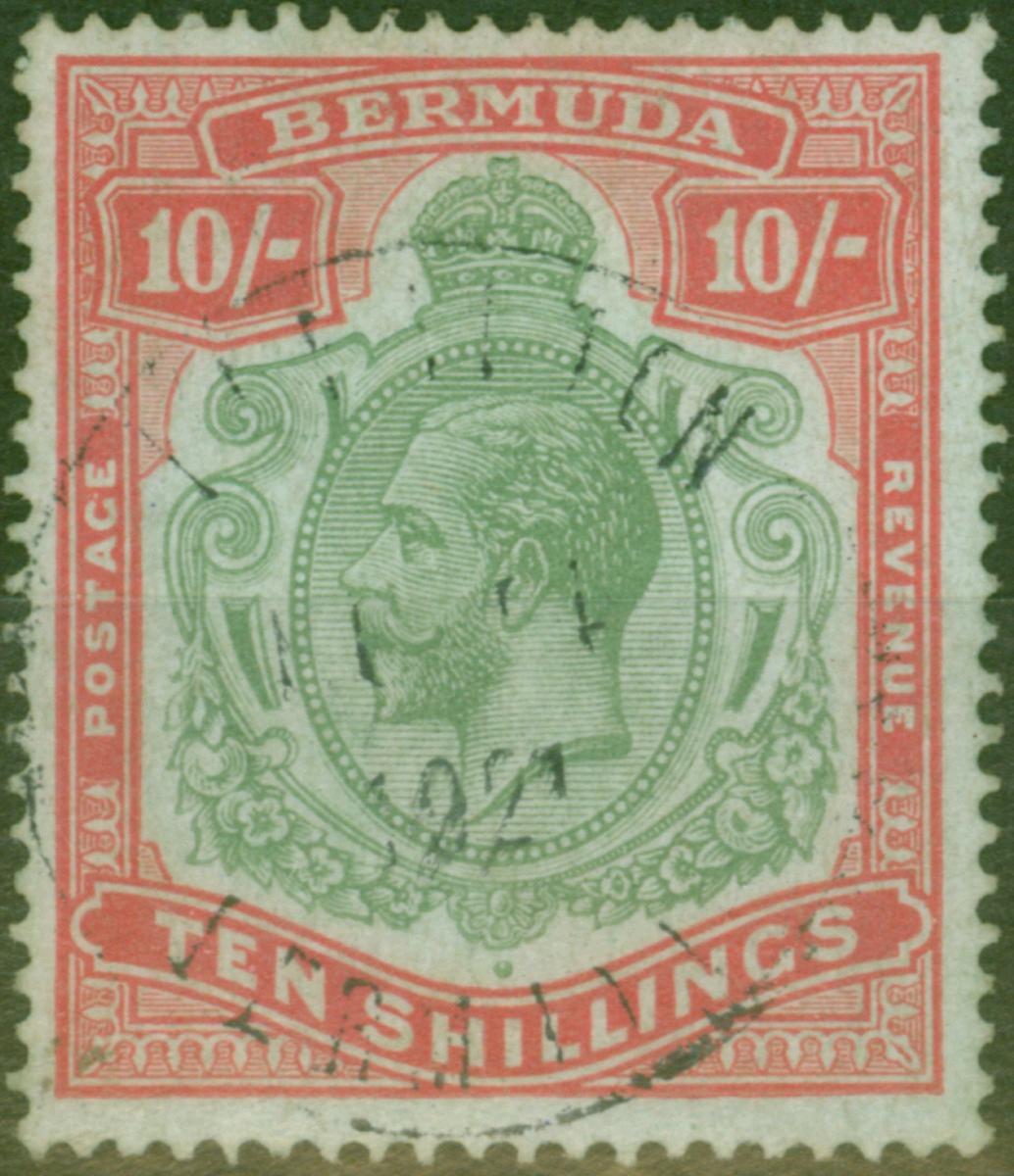 Bermuda 1918 10s Green & CarminePale Bluish Green SG54 V.F.U