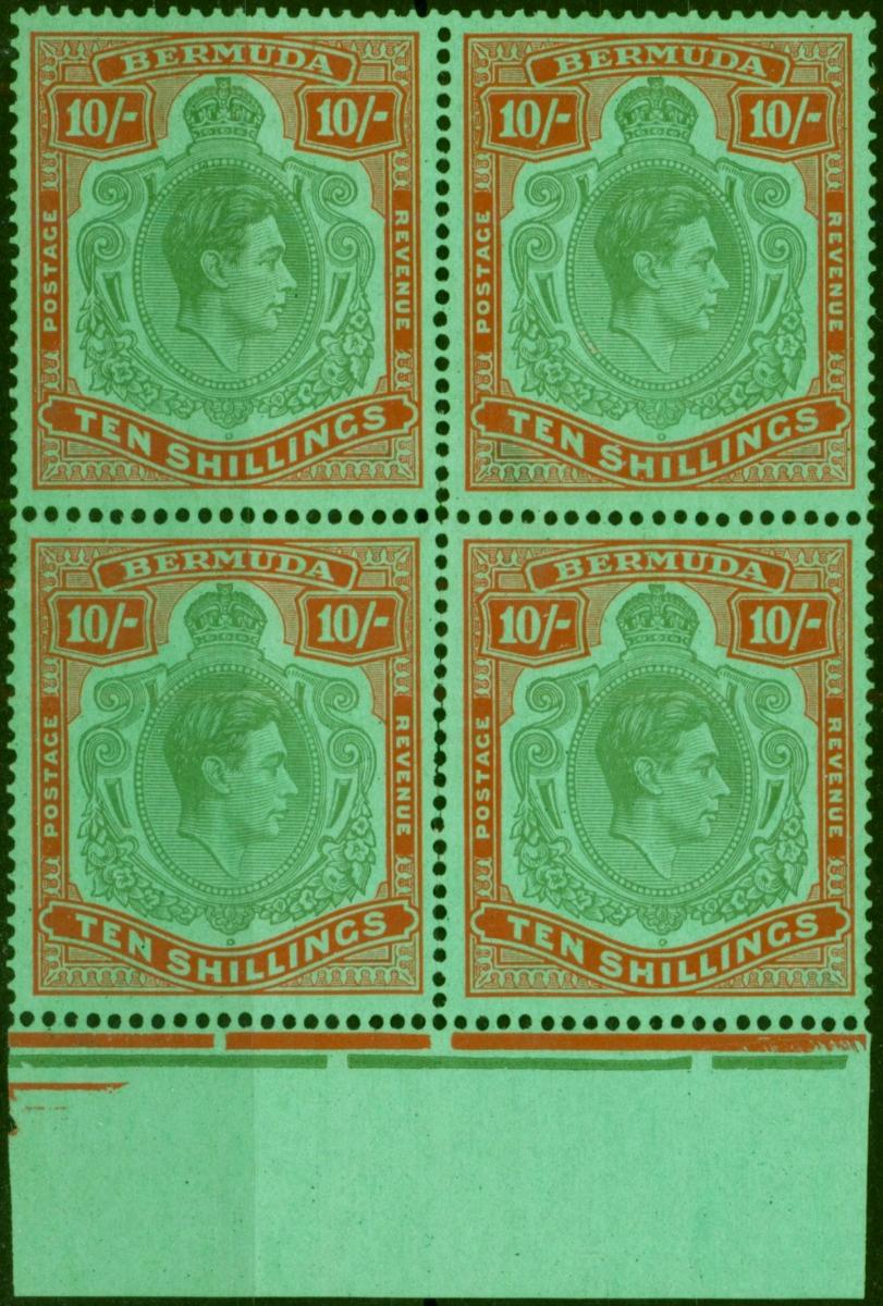 Bermuda 1939 10s Bluish Green & Deep Red-Green SG119a Fine MNH Block of 4