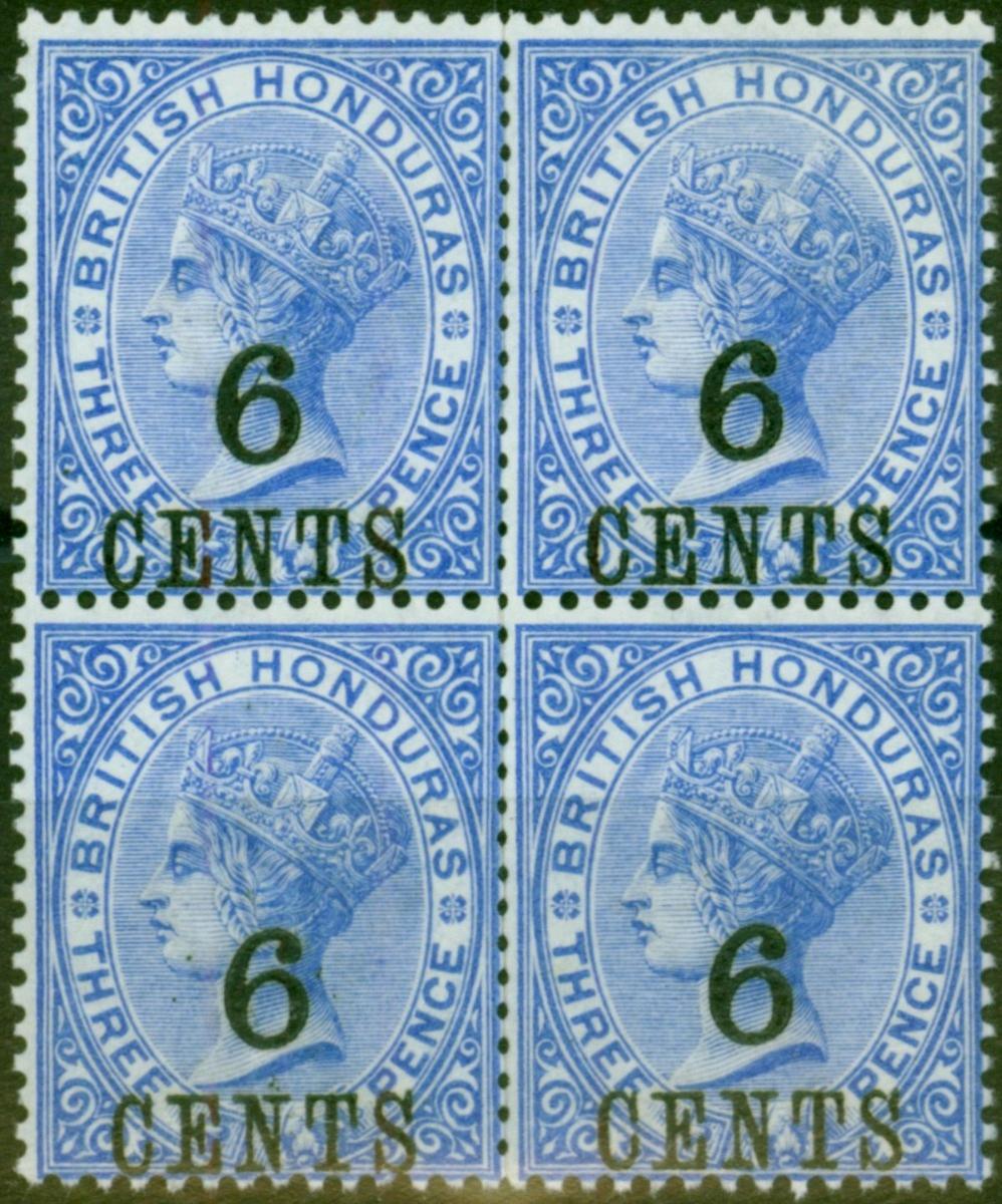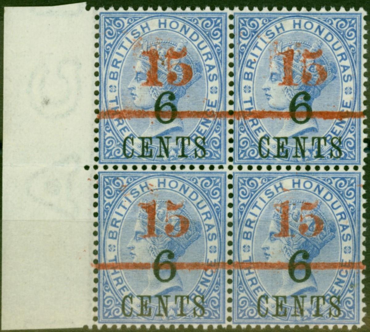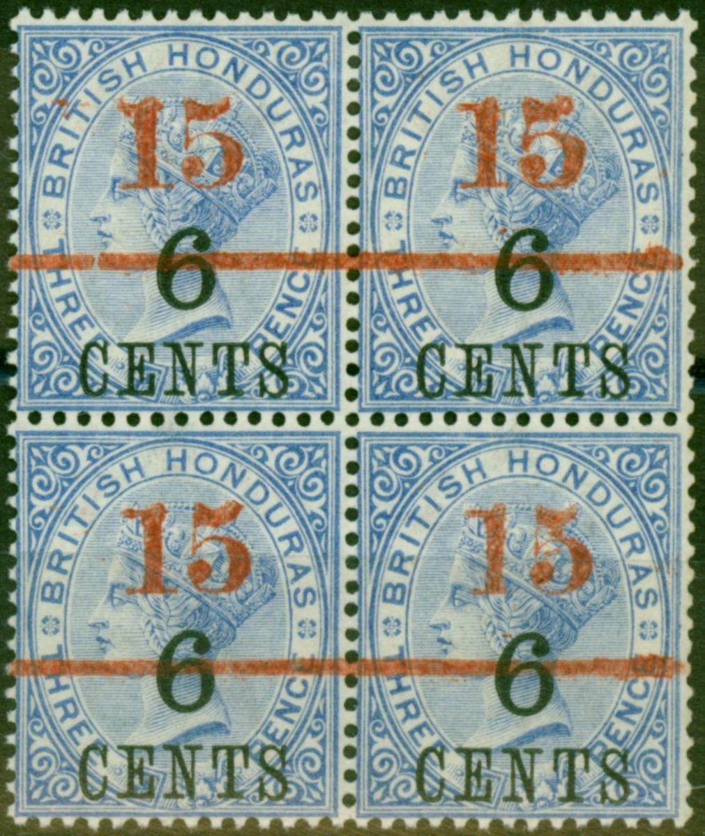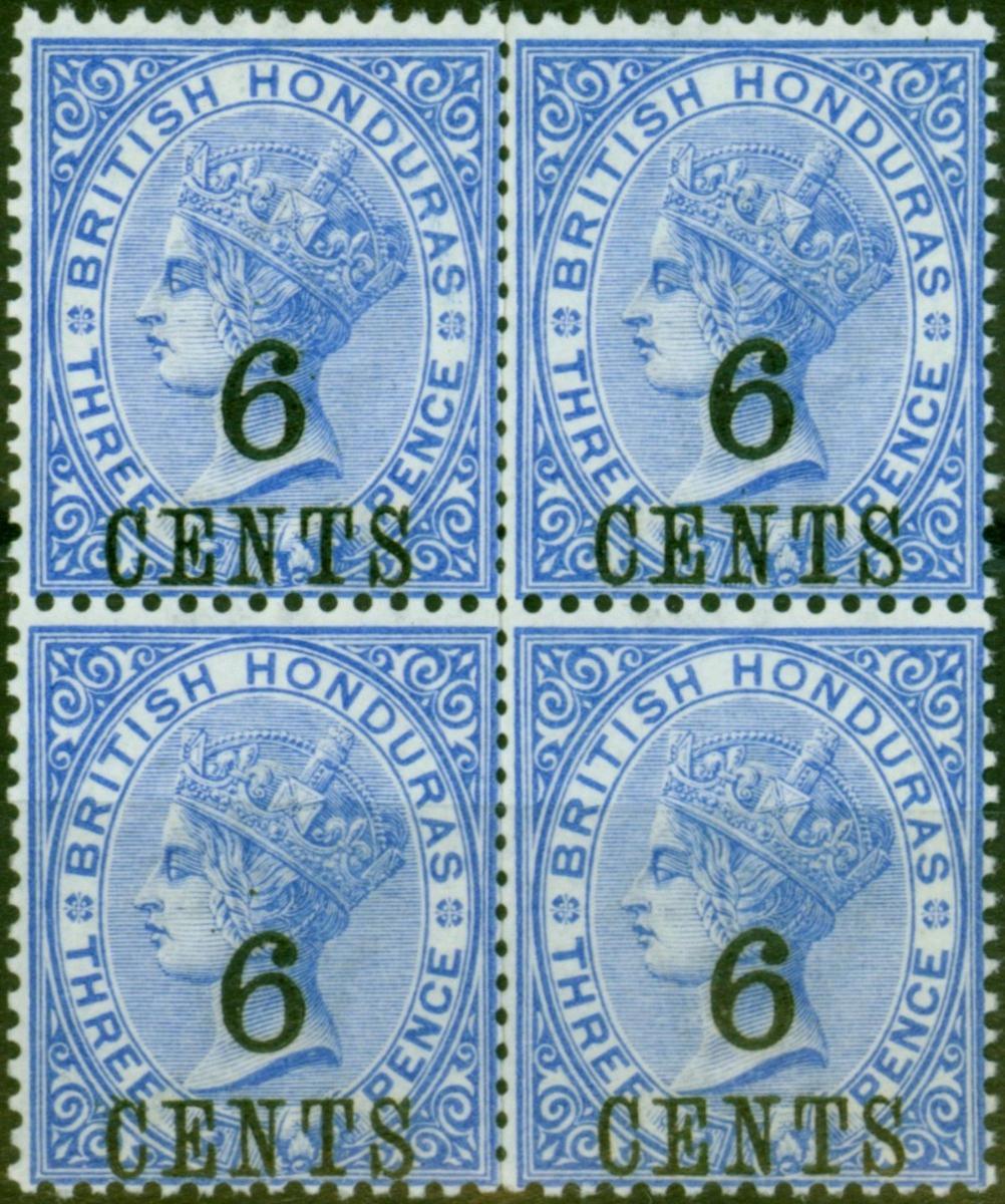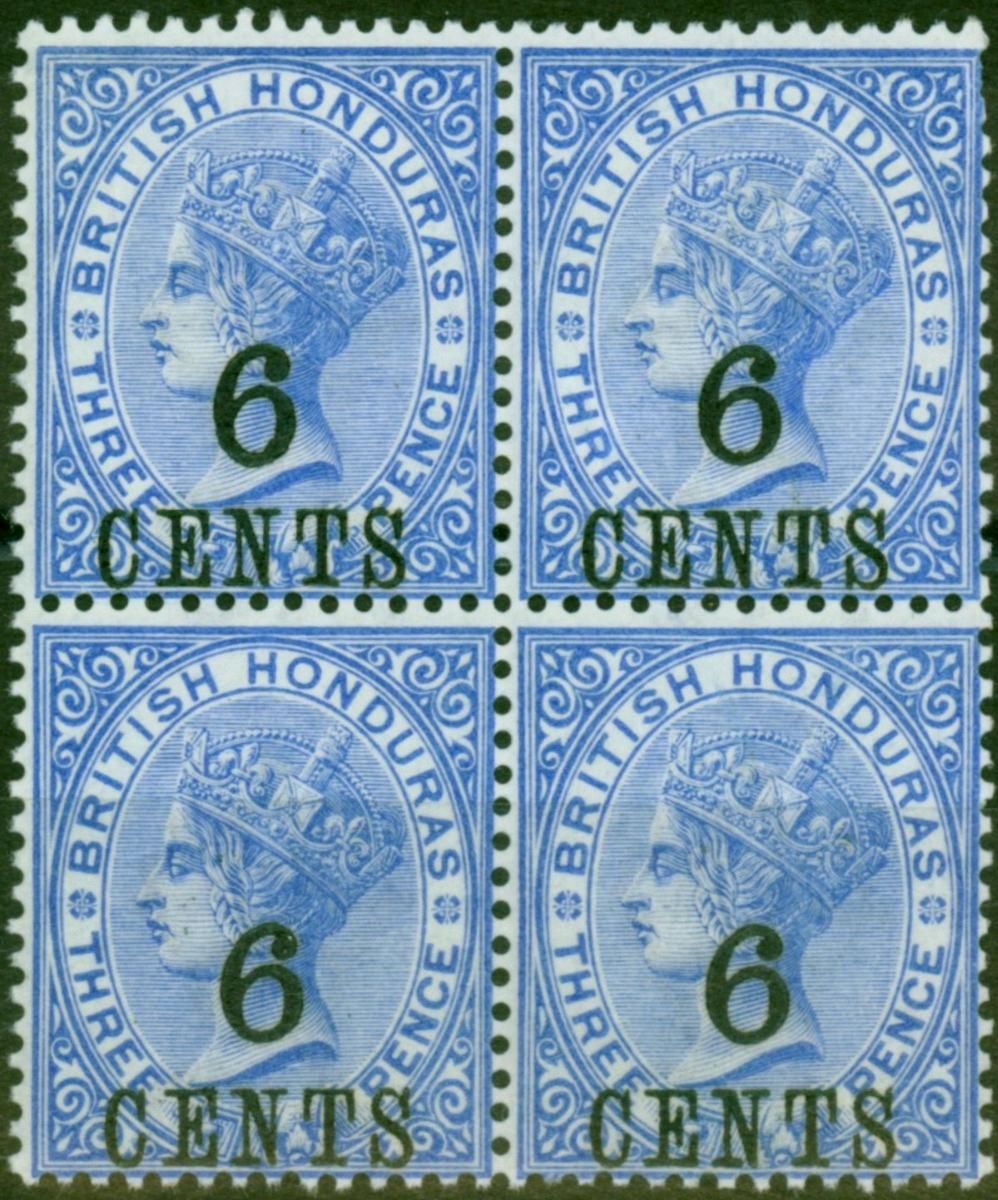 British Honduras 1891 15c on 6c on 3d Ultramarine SG50 V.F MNH Block of 4 (7)