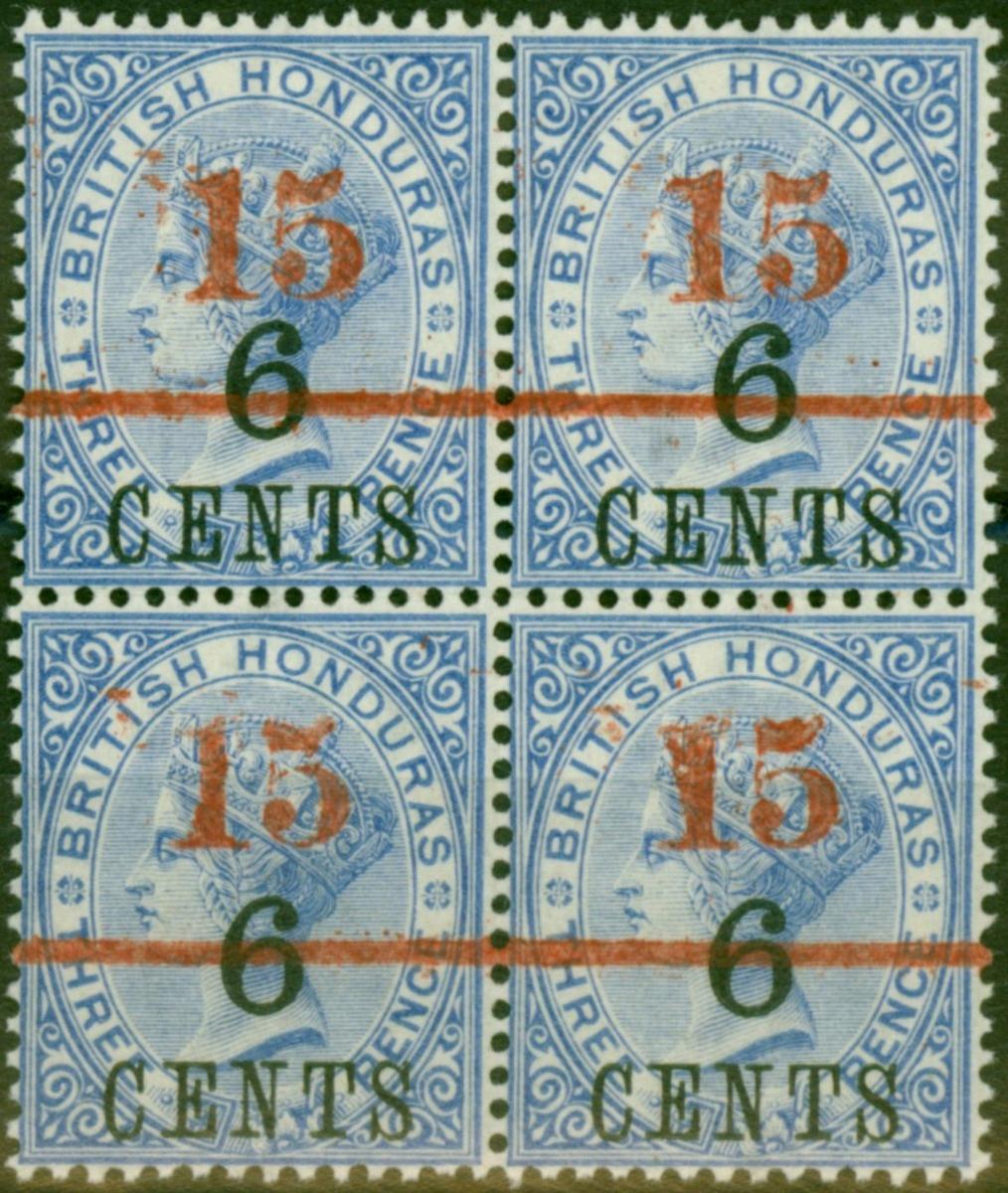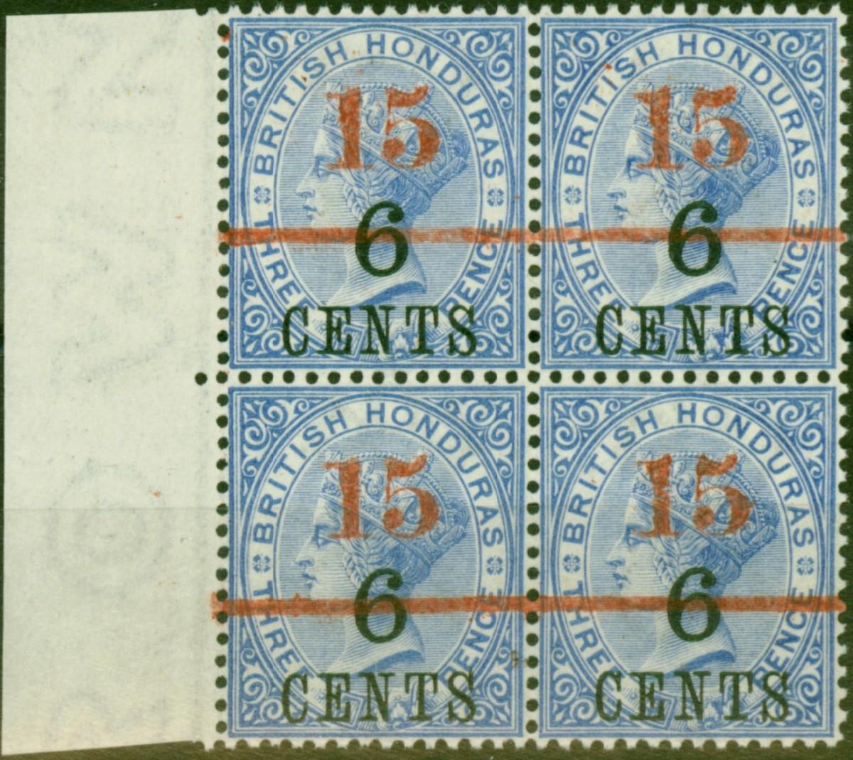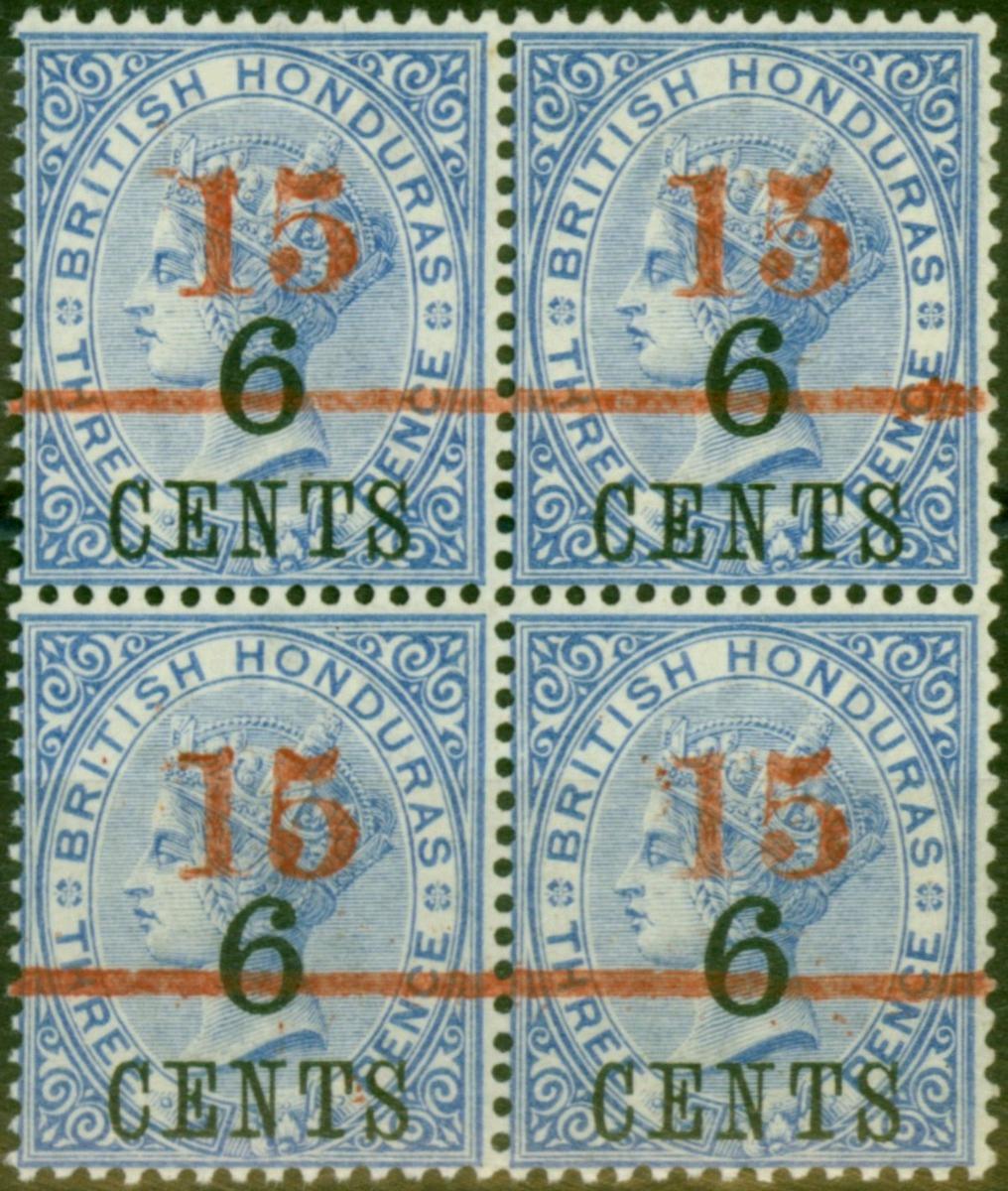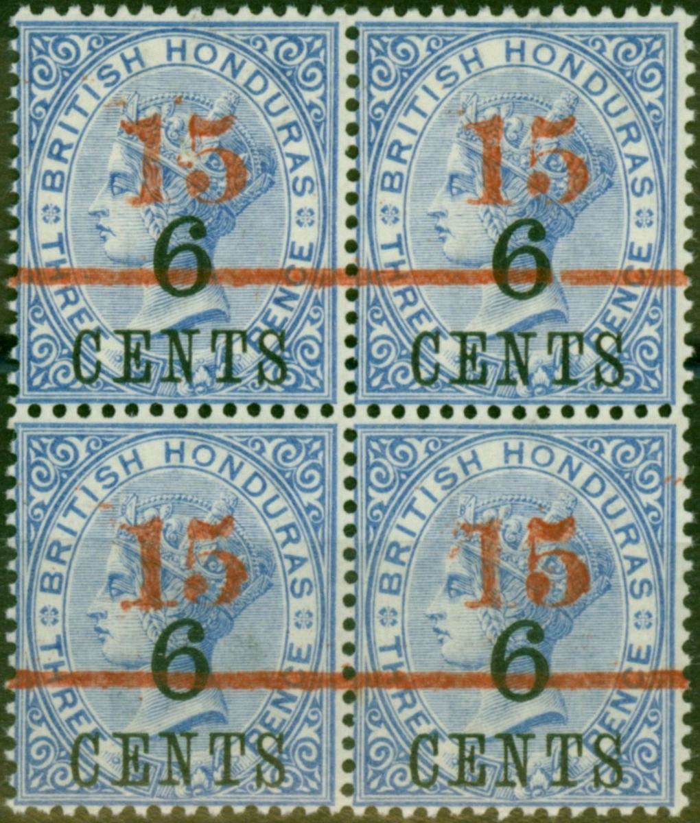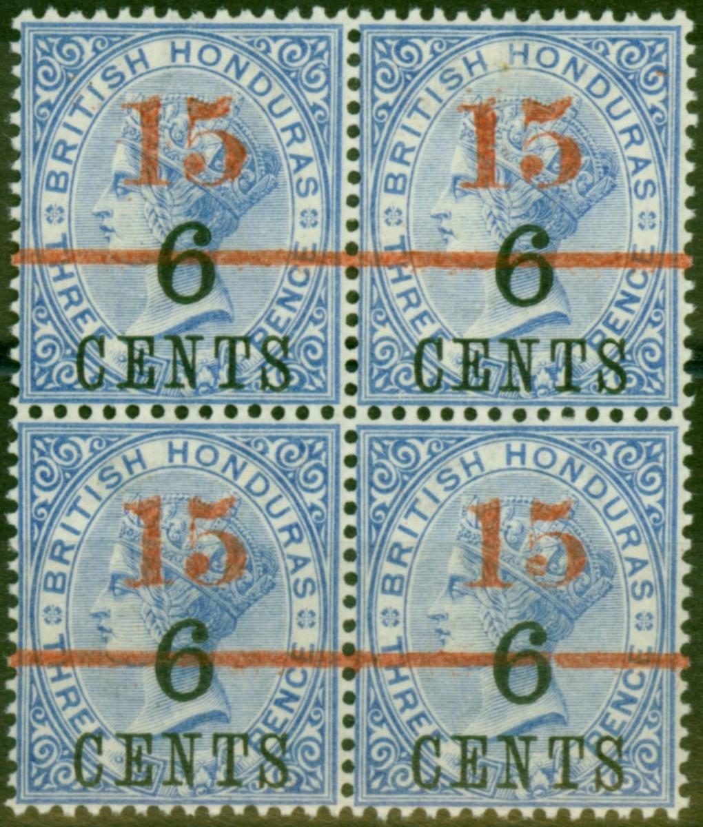 British Honduras 1891 15c on 6c on 3d Ultramarine SG50 V.F MNH Block of 4 (7)