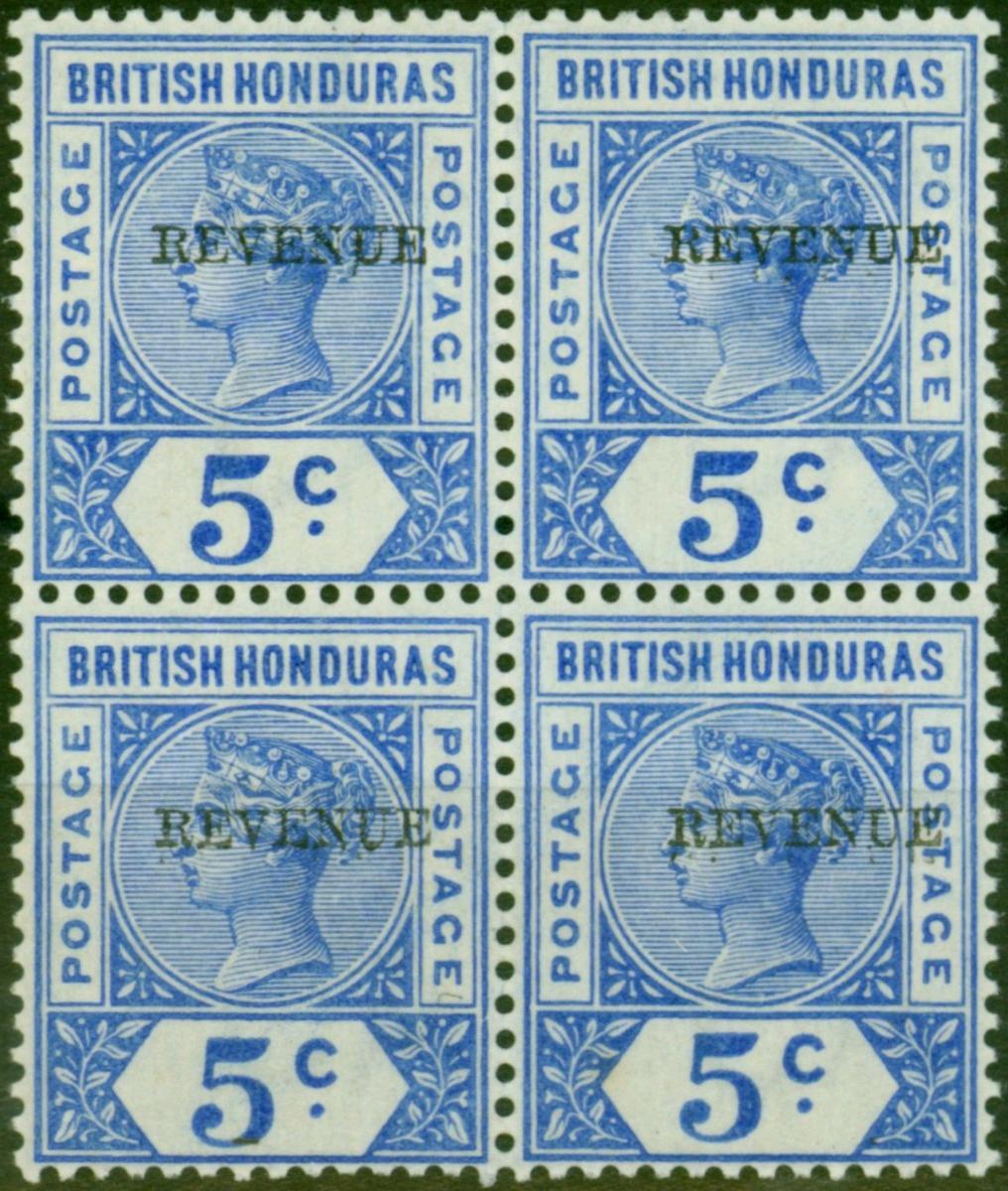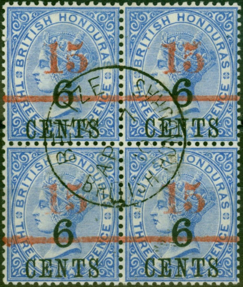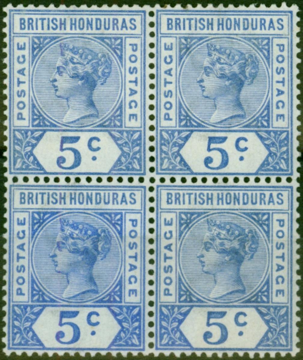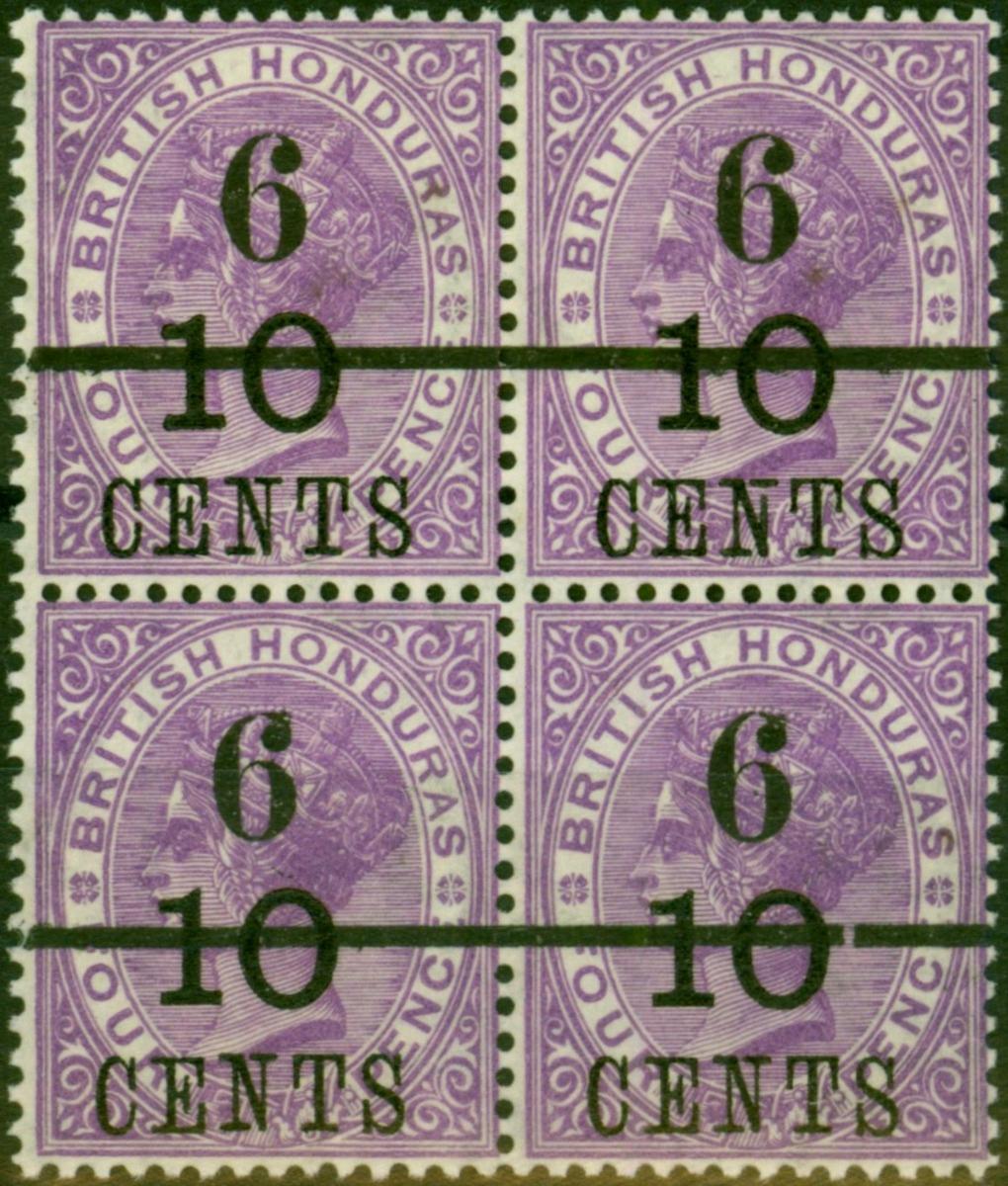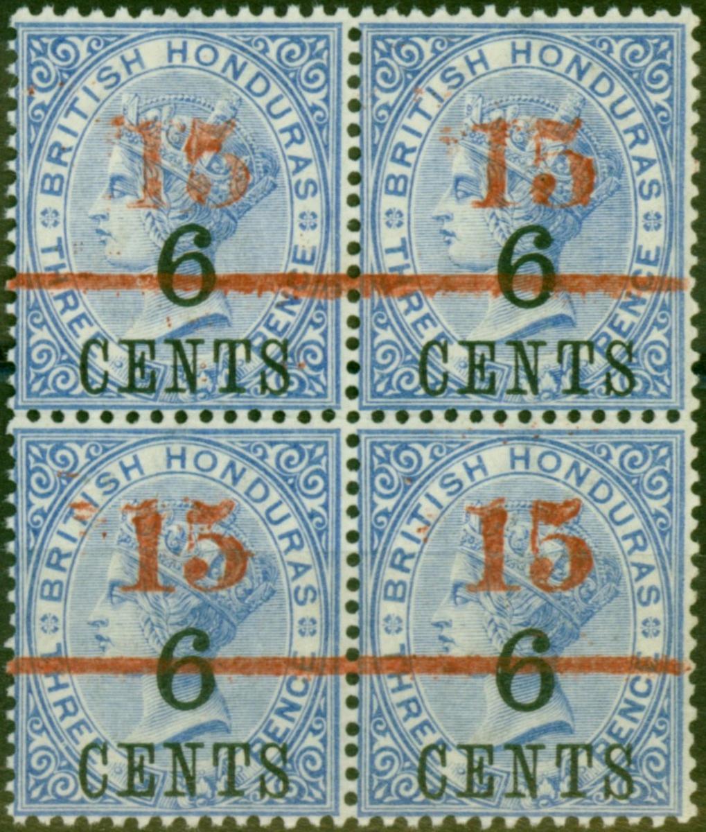 British Honduras 1891 15c on 6c on 3d Ultramarine SG50 V.F MNH Block of 4 (7)