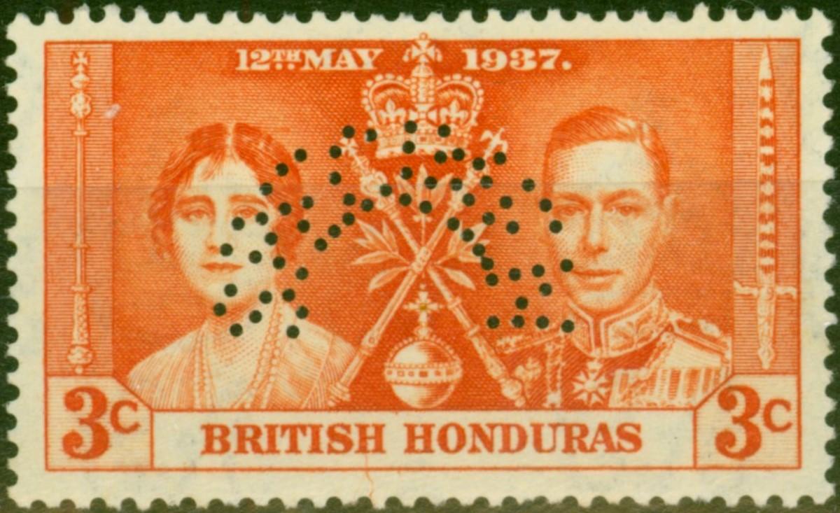 British Honduras 1937 Coronation 3c Orange Perf Specimen SG147s Fine MNH