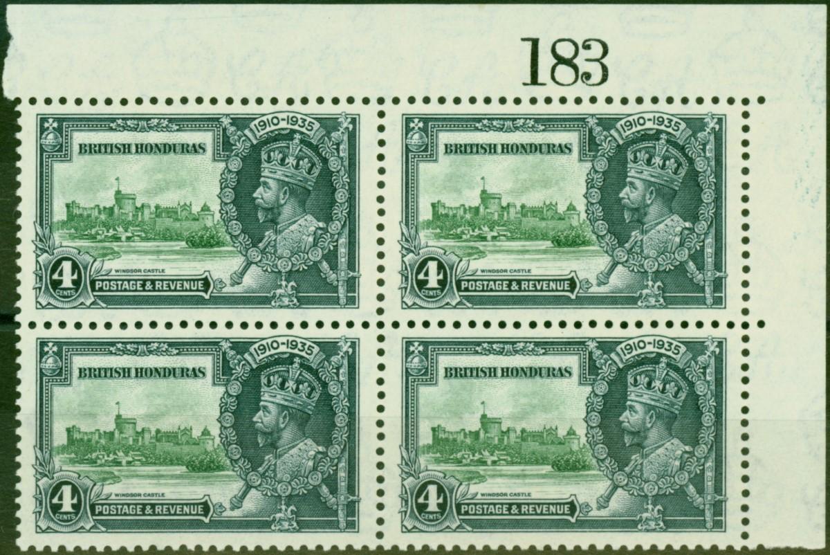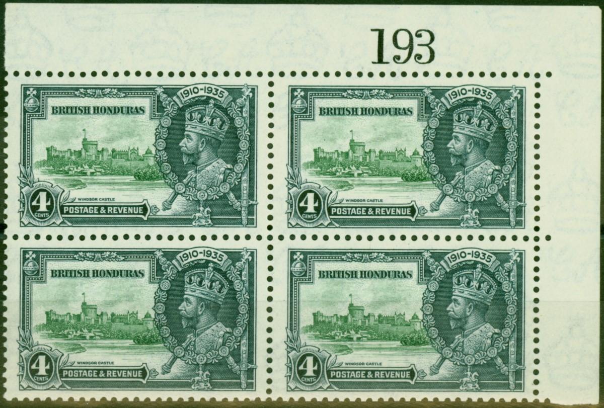 B.Honduras 1935 4c Green & Indigo SG144c 'Lightning Conductor' V.F MNH Control 183 Block of 4