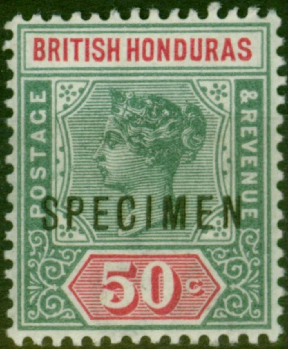 British Honduras 1898 50c Green & Carmine Specimen SG62s V.F MNH