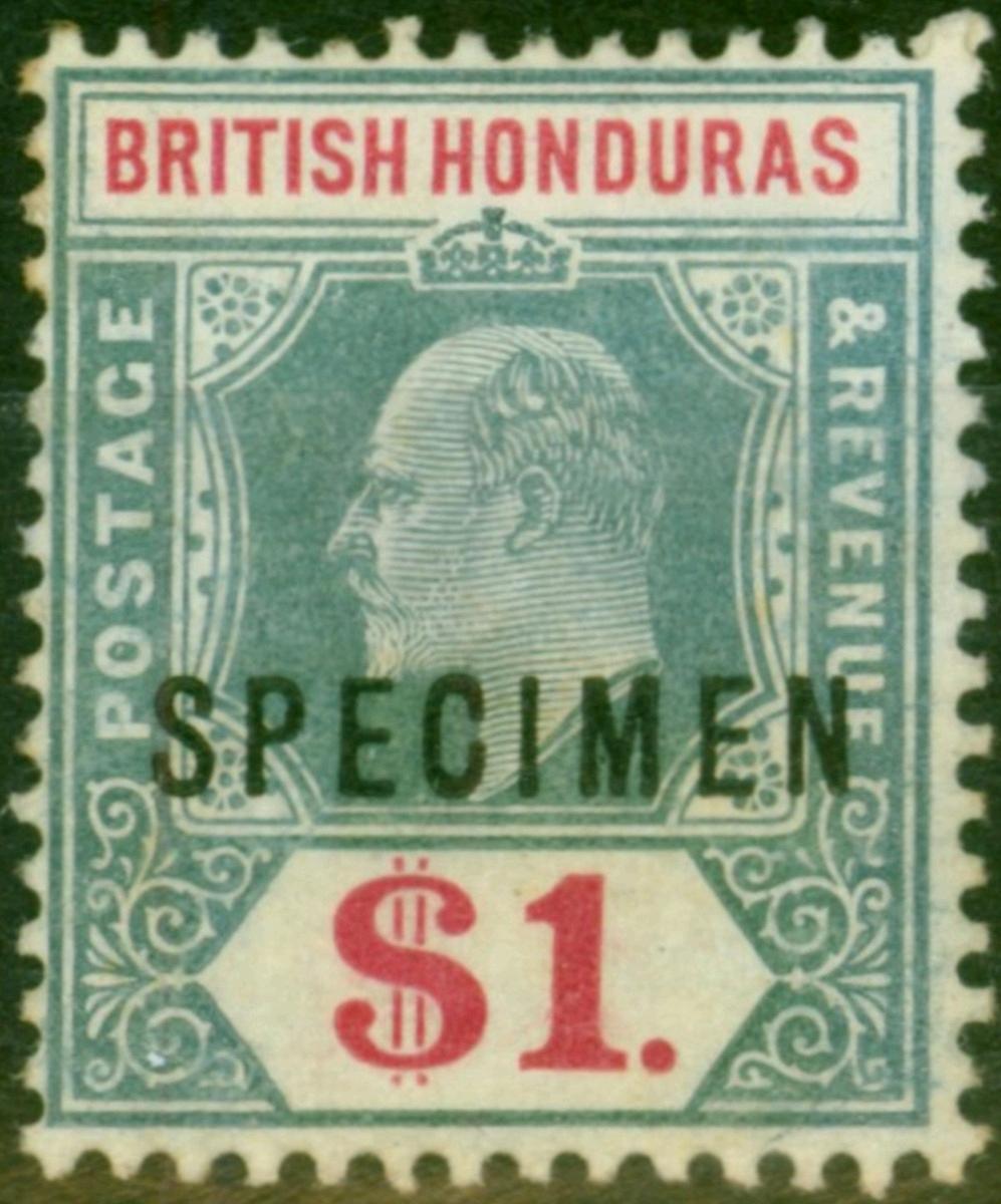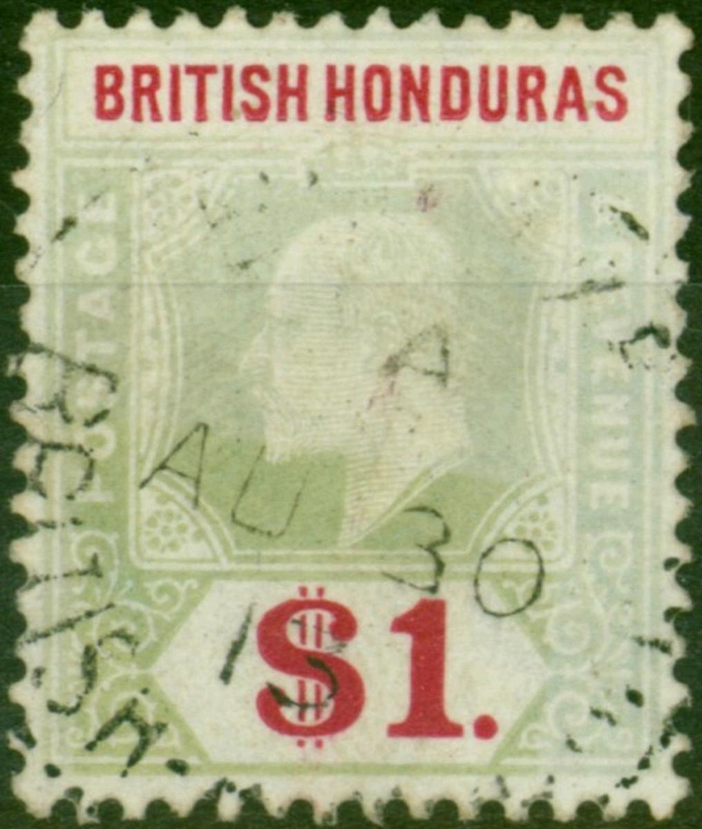 British Honduras 1907 $1 GreyGreen & Carmine Specimen SG91s Fine MM