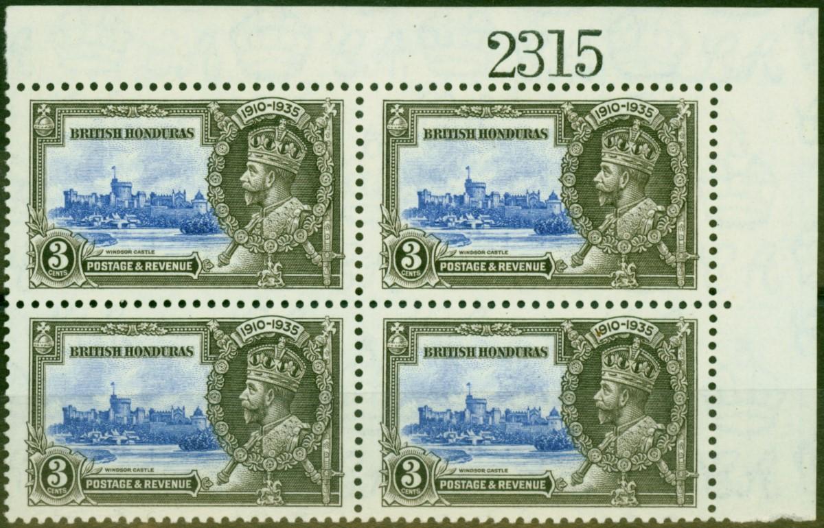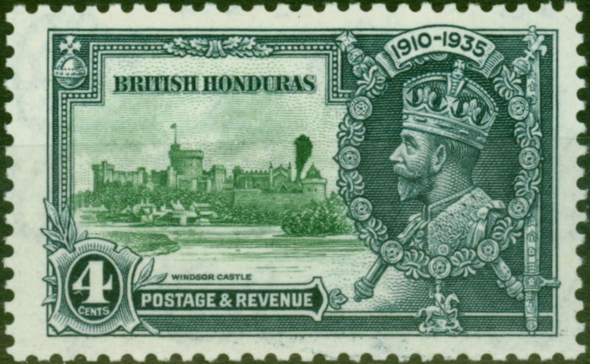 B. Honduras 1935 Jubilee 4c Green & Indigo SG144Var 'Flagstaff on Right Hand Turret' Good MM