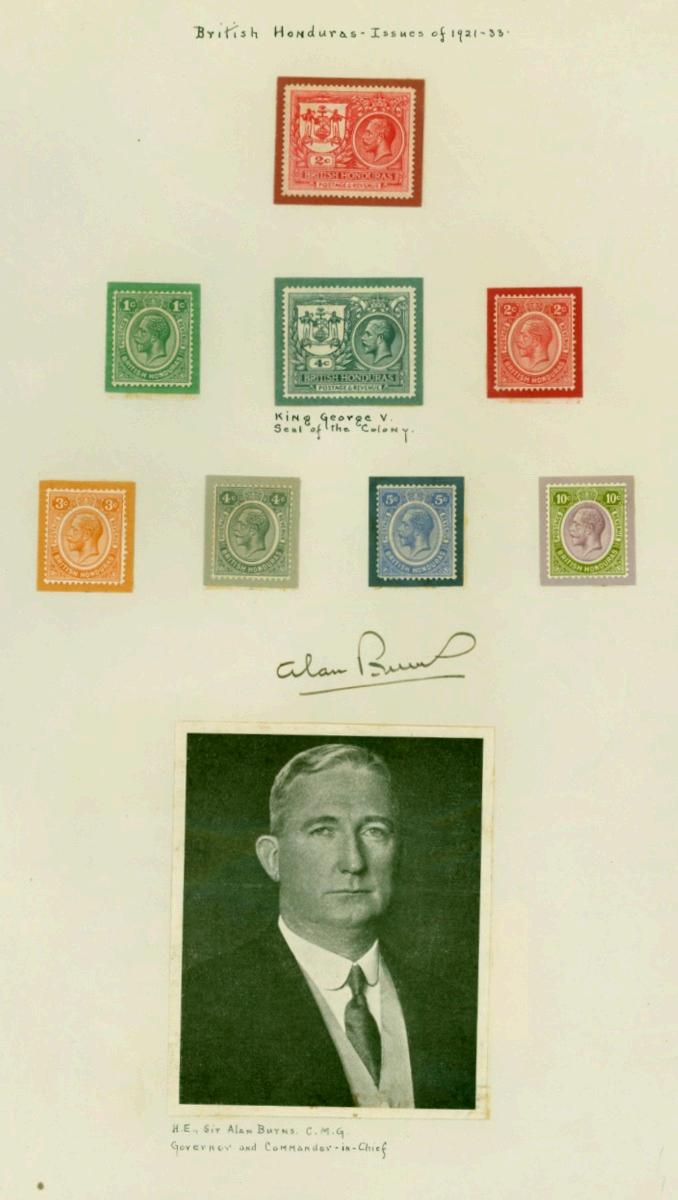 B. Honduras 1921-33 Signed Photo of Governor Sir Alan Burns Bearing SG121, 123, 126 & 128-132 on Page