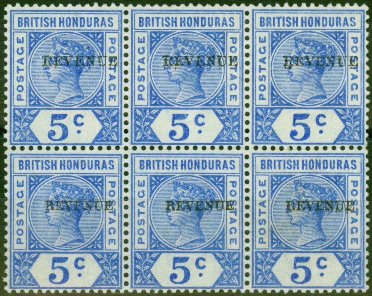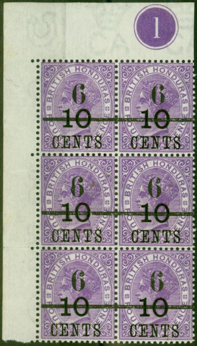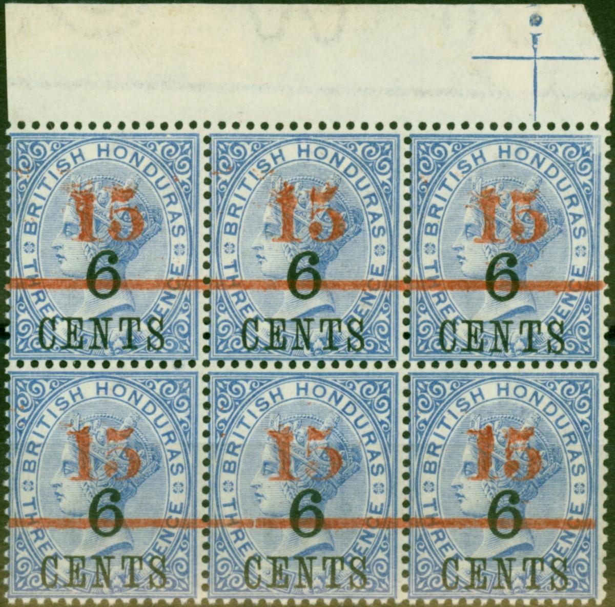 British Honduras 1891 15c on 6c on 3d Ultramarine SG50 V.F MNH Block of 6