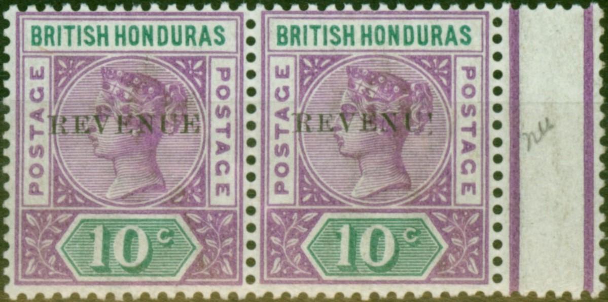 British Honduras 1899 10c Mauve & Green SG67b 'Revenu' V.F MNH in Pair Rare
