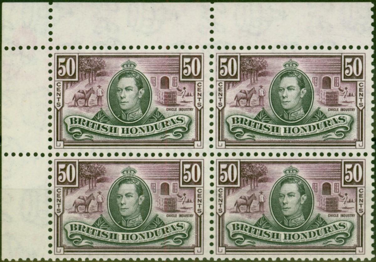 British Honduras 1938 50c Black & Purple SG158 V.F MNH Corner Block of 4