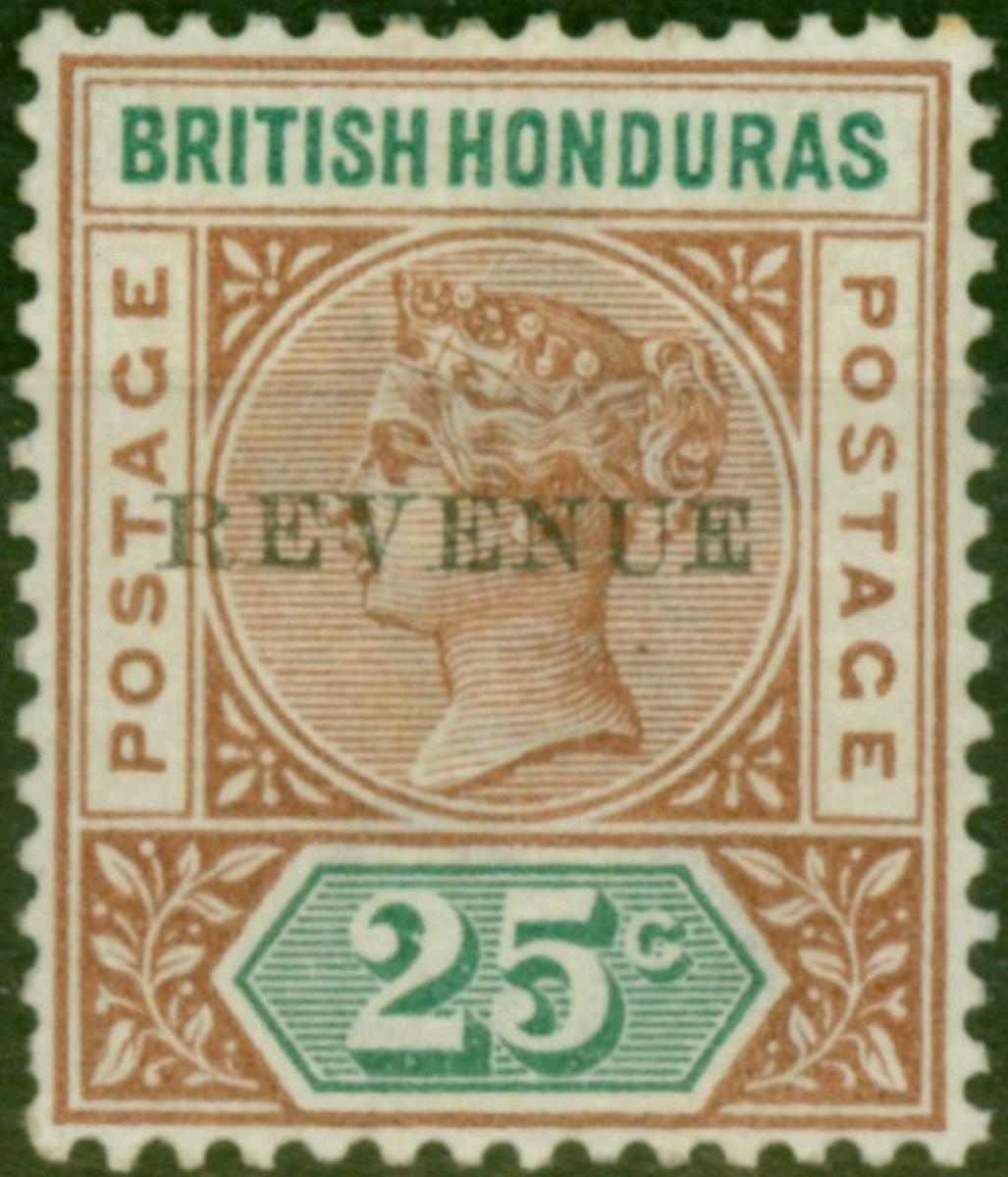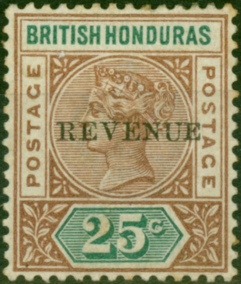 British Honduras 1899 25c RedBrown & Green SG68c 'Repaired S' Fine MM Scarce