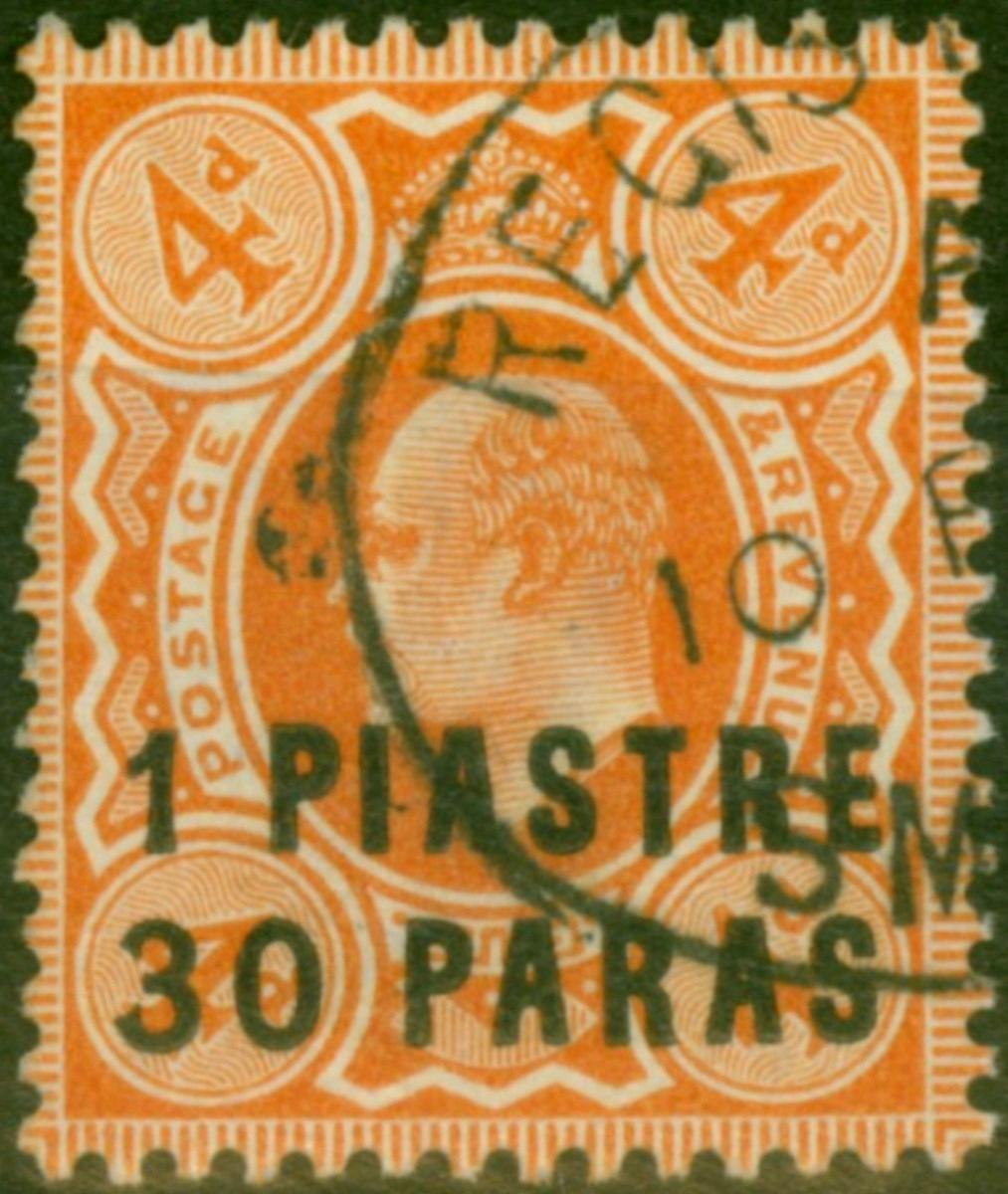 British Levant 1909 1pi 30pa on 4d Brown-Orange SG19 V.F.U