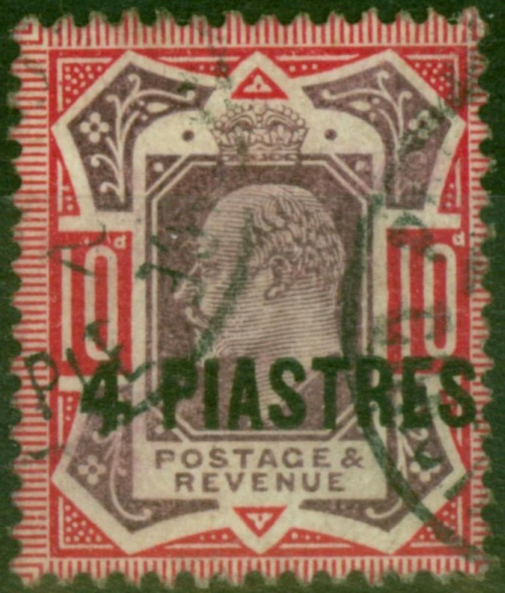 British Levant 1902 4pi on 10d Dull Purple & Carmine SG10a 'No Cross on Crown' Fine Used