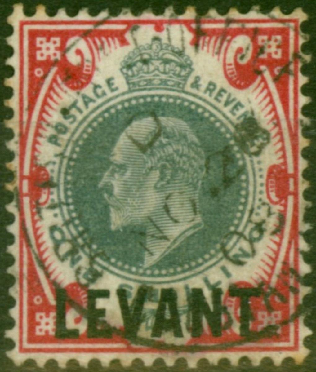 British Levant 1909 5pi on 1s Dull Green & Carmine SG21 Fine Used (2)