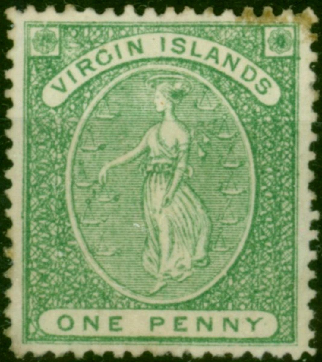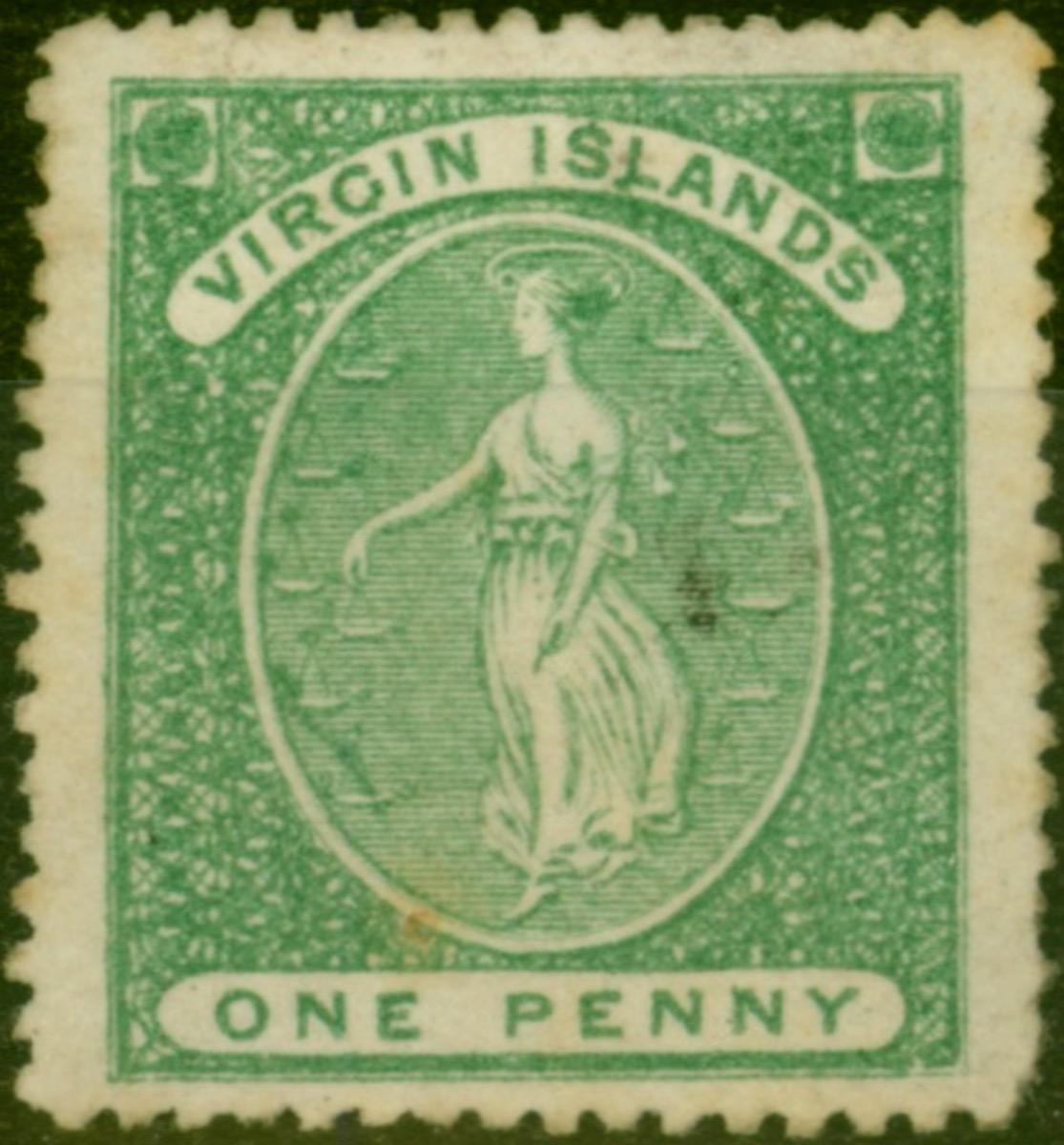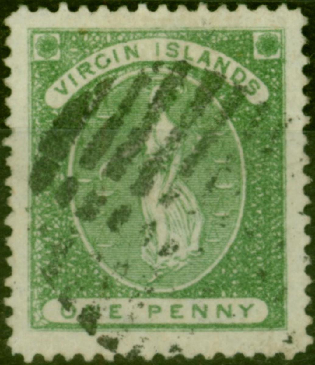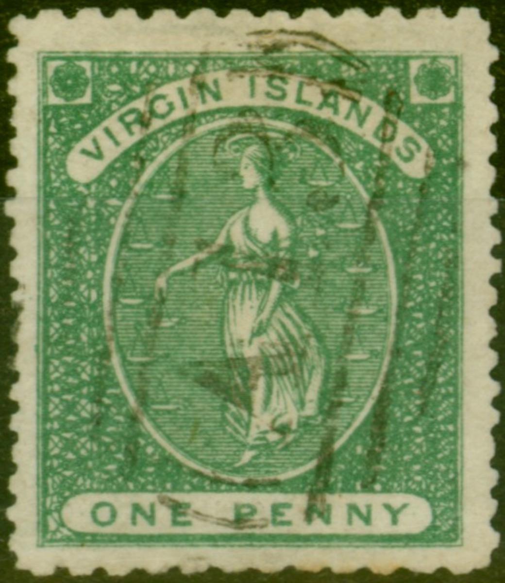 Virgin Islands 1866 1d Green SG5a P.12 x 15 Forged Perfs Fine Used CV £7000 as Genuine