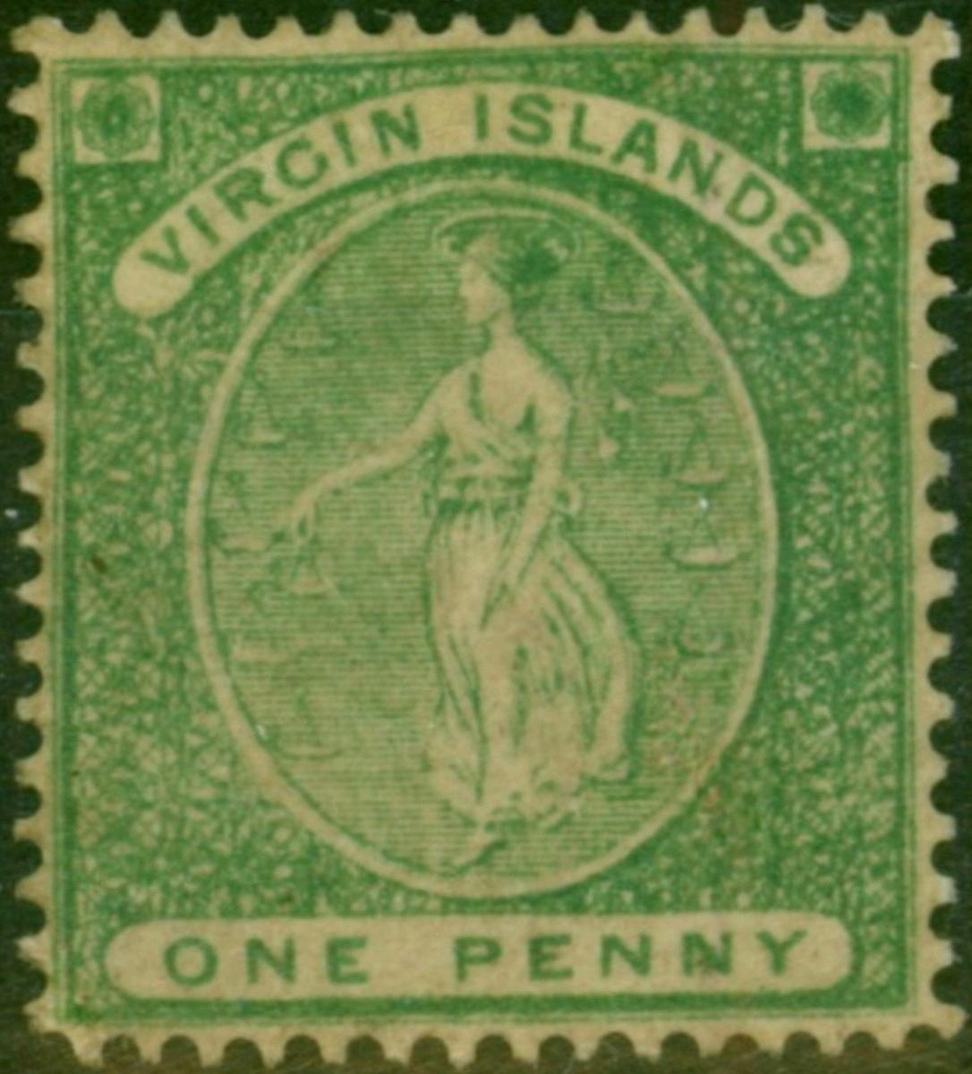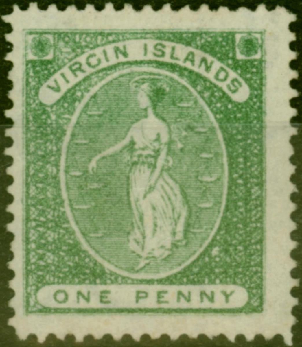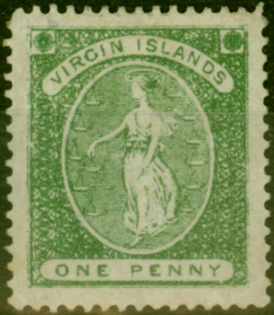 Virgin Islands 1866 1d Green SG5a P.12 x 15 Forged Perfs Fine Used CV £7000 as Genuine