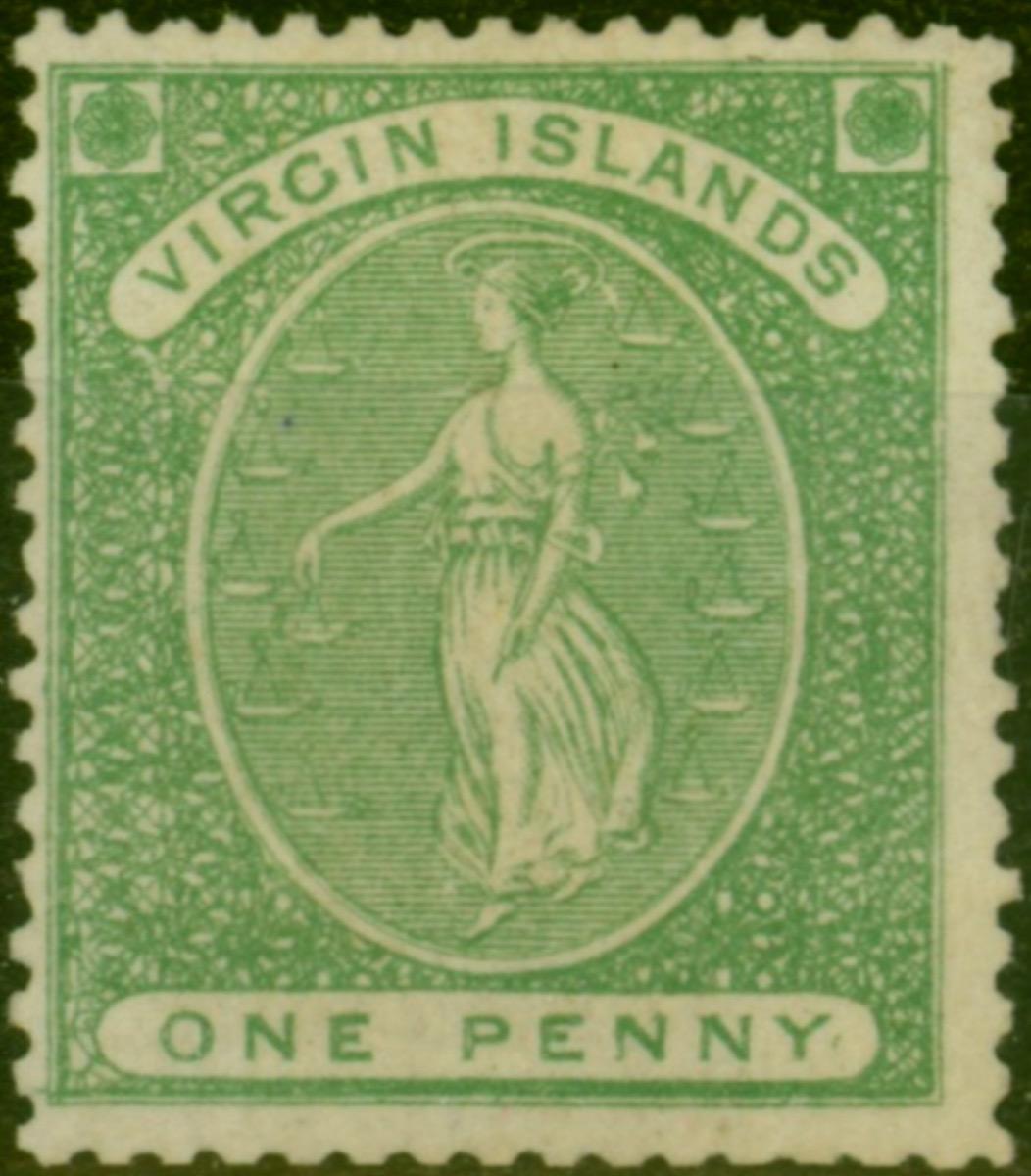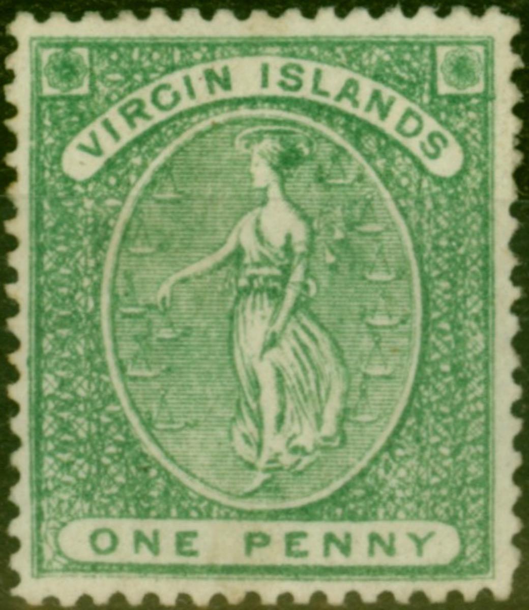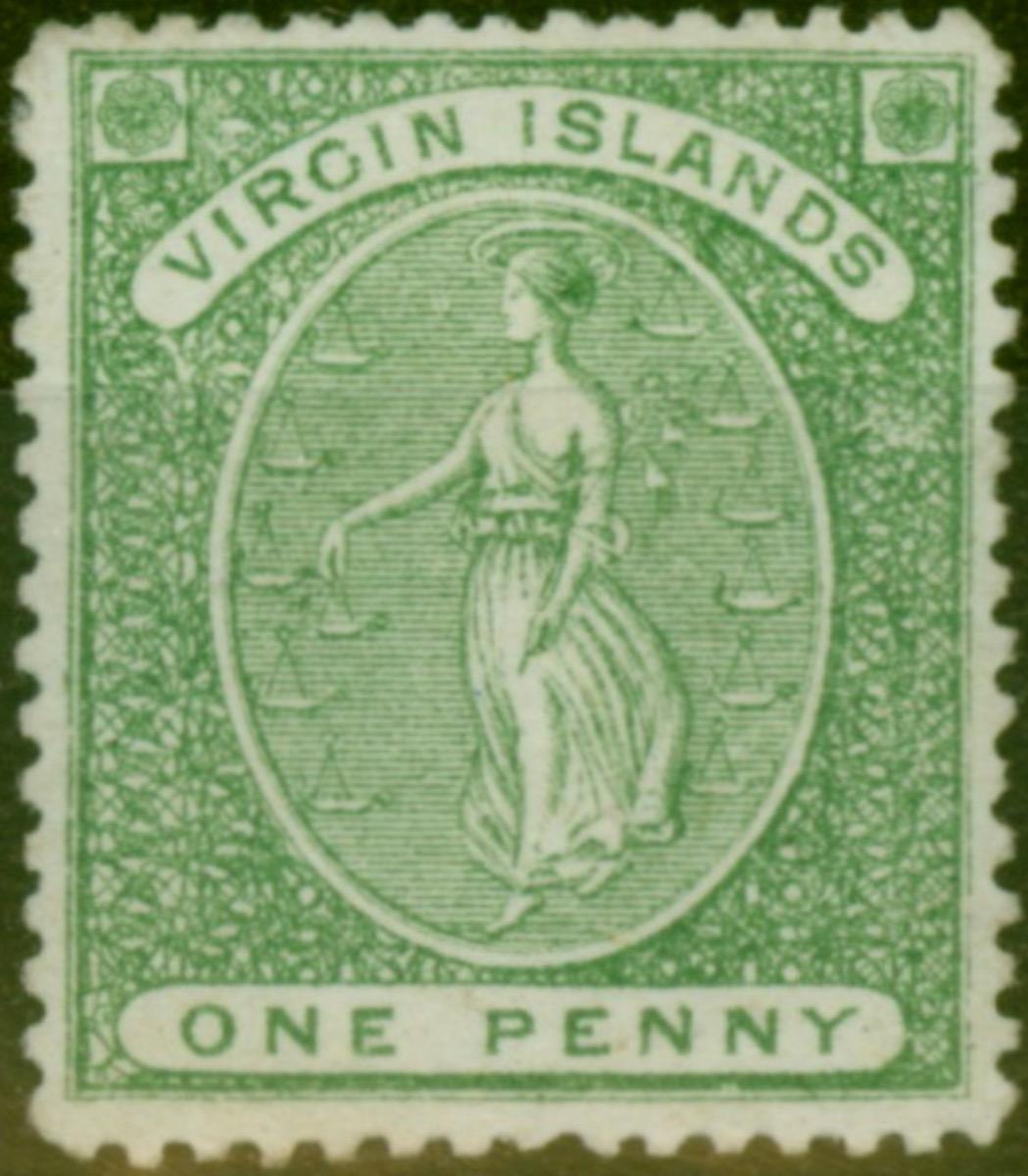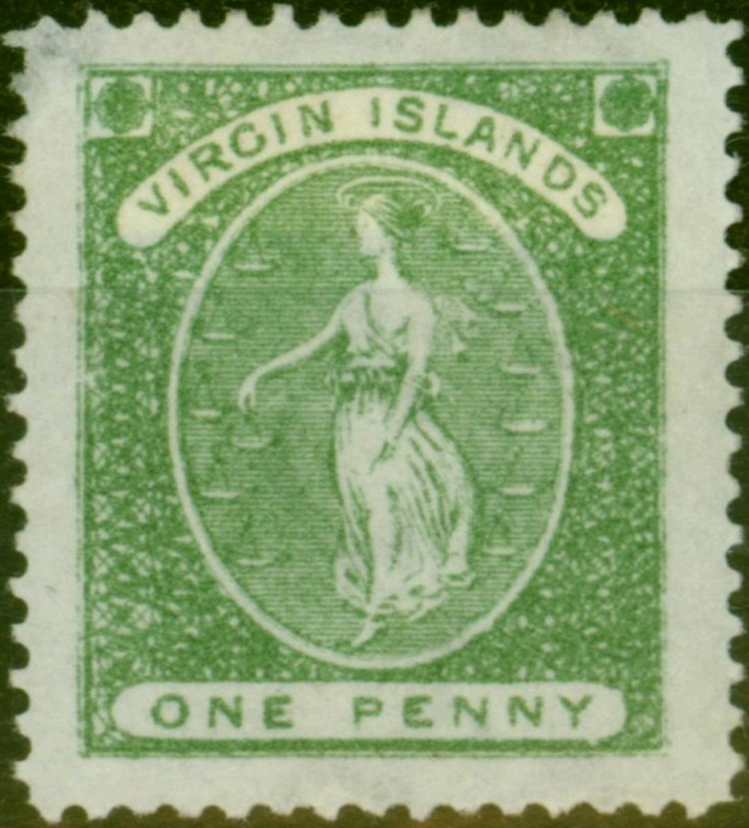 Virgin Islands 1866 1d Green SG5a P.12 x 15 Forged Perfs Fine Used CV £7000 as Genuine