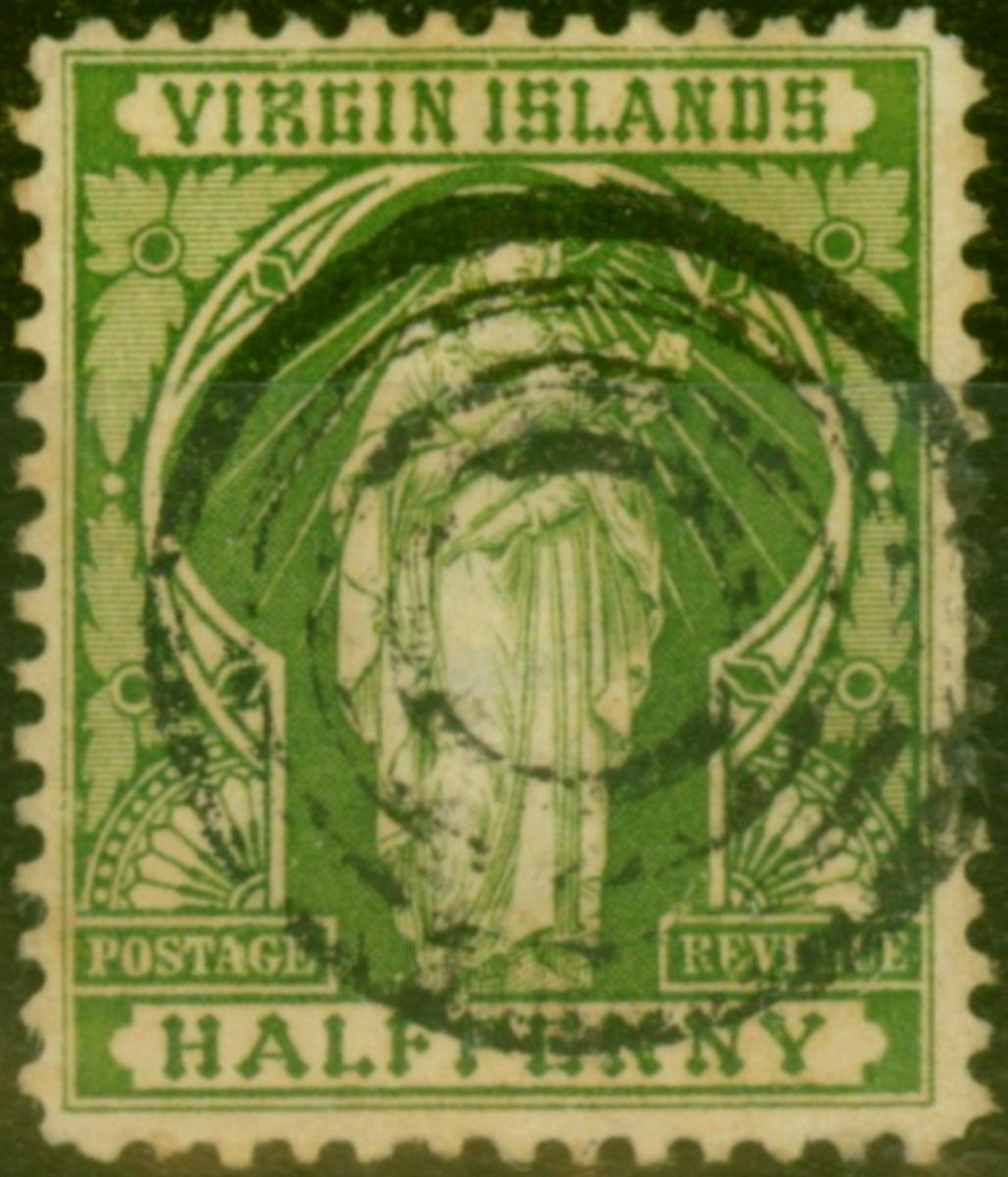 Virgin Islands 1899 1/2d YellowGreen SG43 'Cancelled on Receipt D.W.I 4 Ring Cancel Scarce