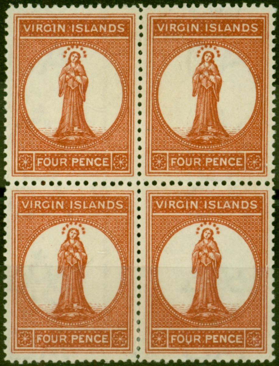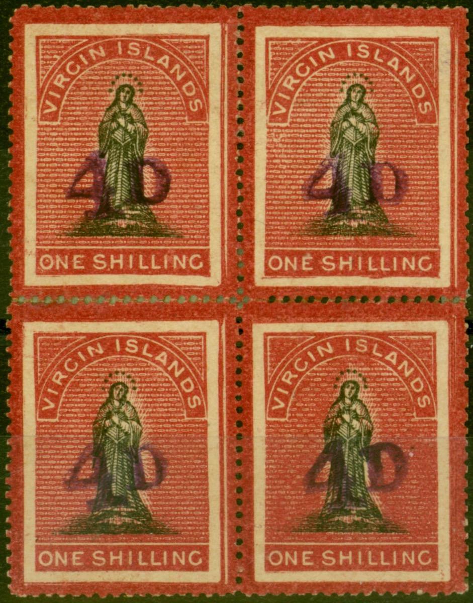 Virgin Islands 1888 4d on 1s Black & Rose-Carmine SG42 Fine MM Block of 4