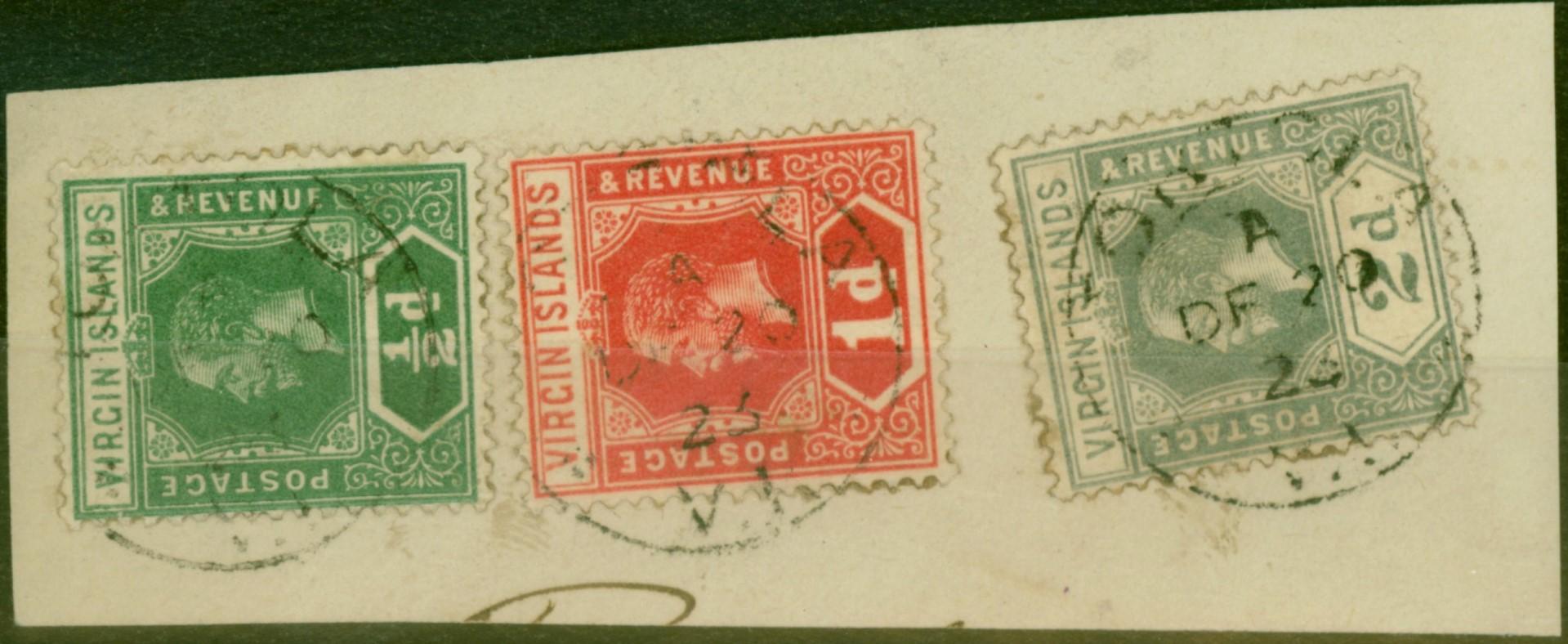 Virgin Islands 1913 1d Deep Red SG70 V.F.U x 3 on Large Registered Piece