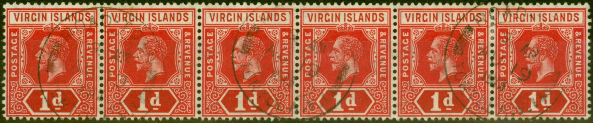 Virgin Islands 1919 1d Carmine-Red SG70c Cancelled on Receipt in D.W.I 4 Ring Cancel Rare