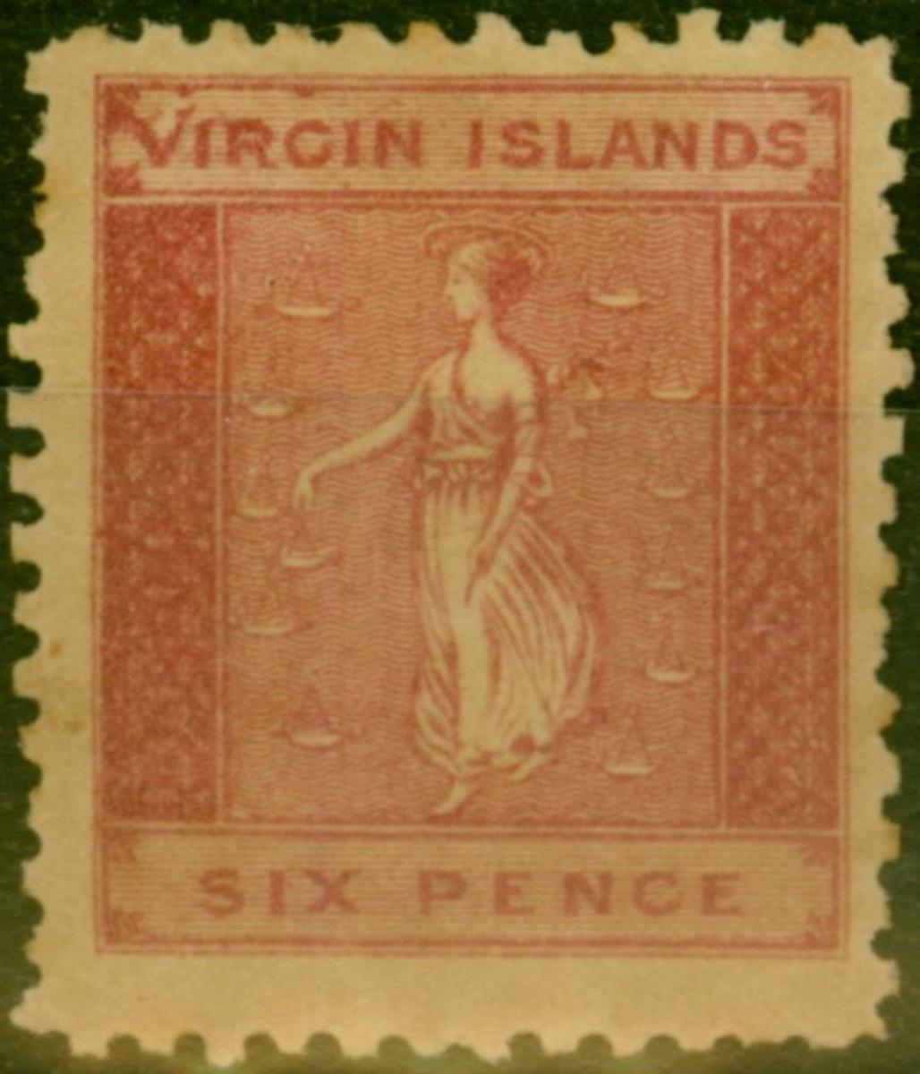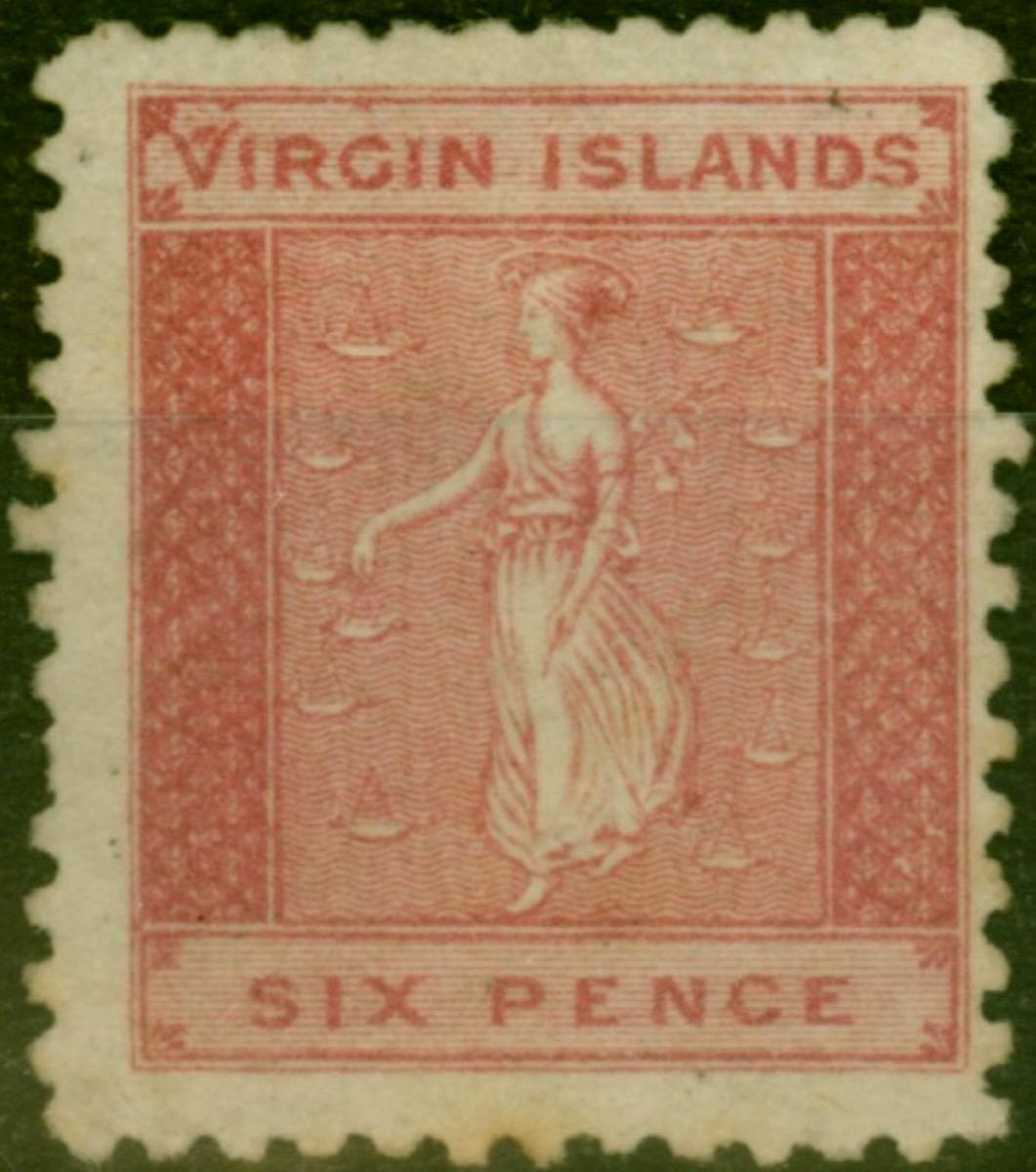 Virgin Islands 1866 6d Rose SG3a 'Large V in Virgin' Fine MM