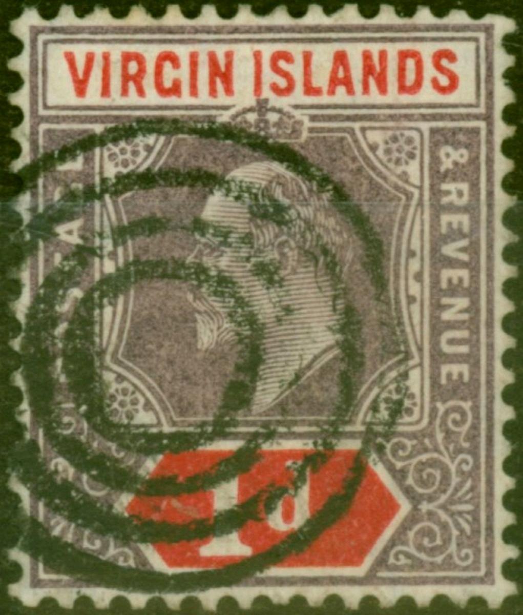 Virgin Islands 1904 1d Dull Purple & Scarlet SG55 'Cancelled in D.W.I 4 Ring Cancel Rare