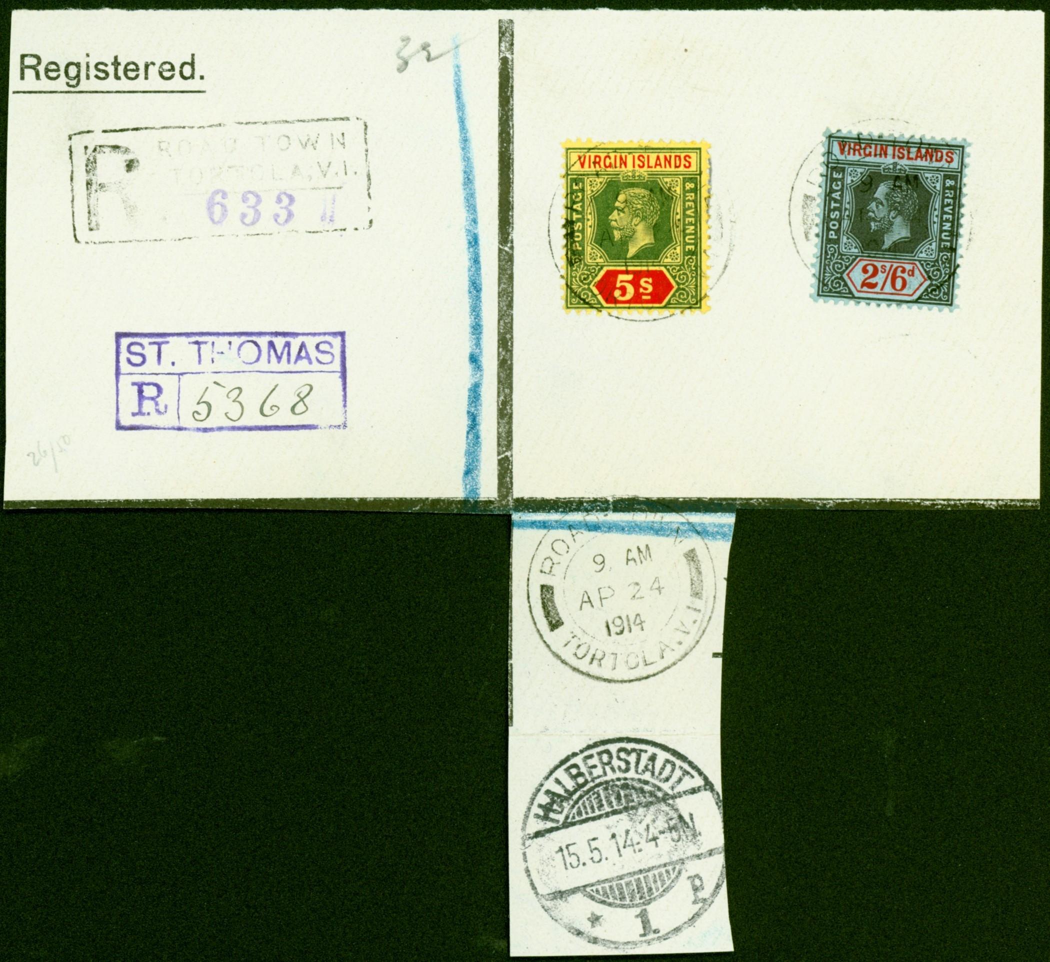 Virgin Is 1914 Part Reg Cover/Large Piece to Germany Bearing SG76-77 'AP 24 1914' CDS