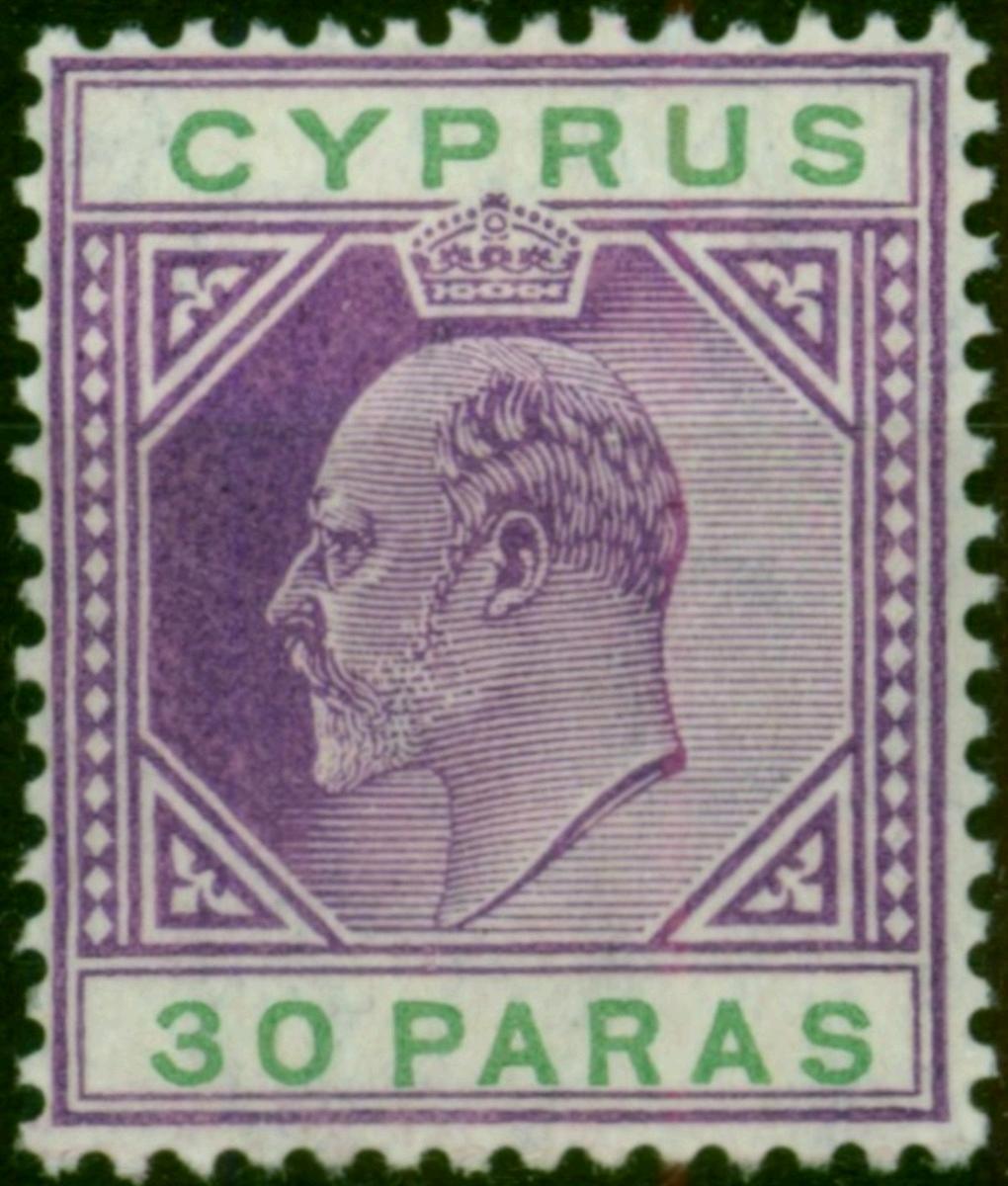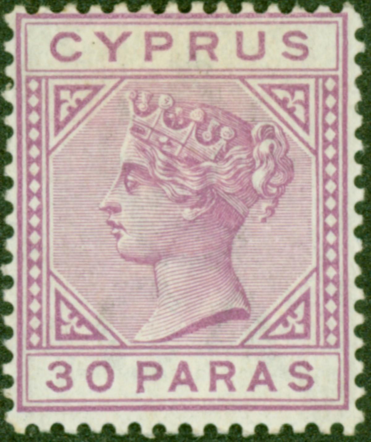 Cyprus 1896 30pa Bright Mauve & Green SG41a 'Damaged US' Fine Used