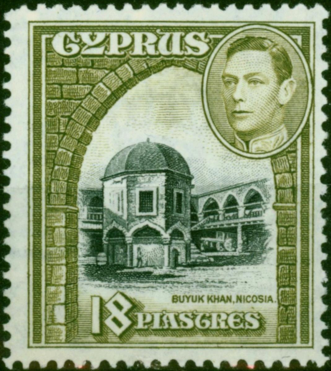 Cyprus 1938 18pi Black & OliveGreen SG160 Fine LMM