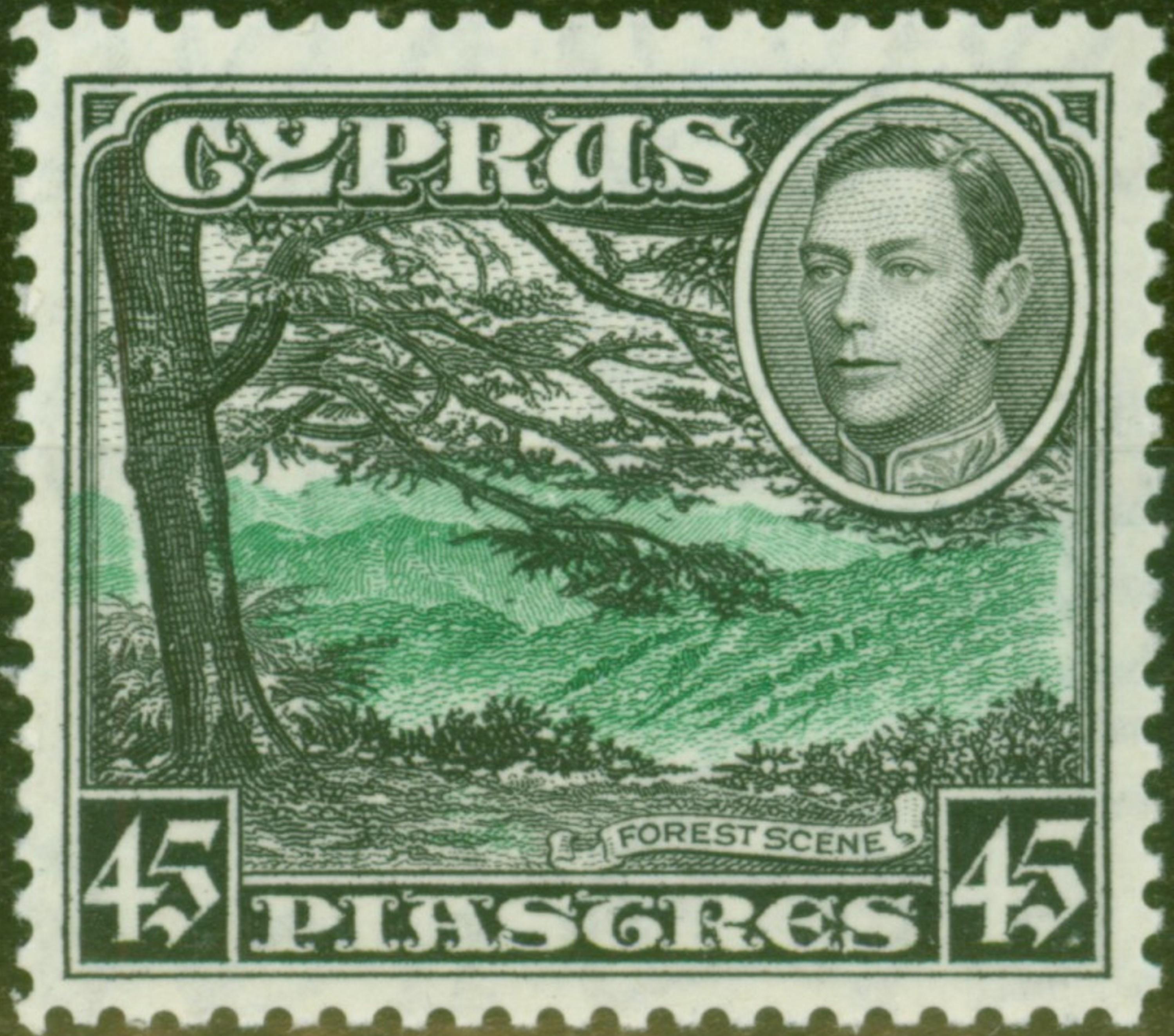 Cyprus 1947 18pi Black & SageGreen SG160a Fine MM