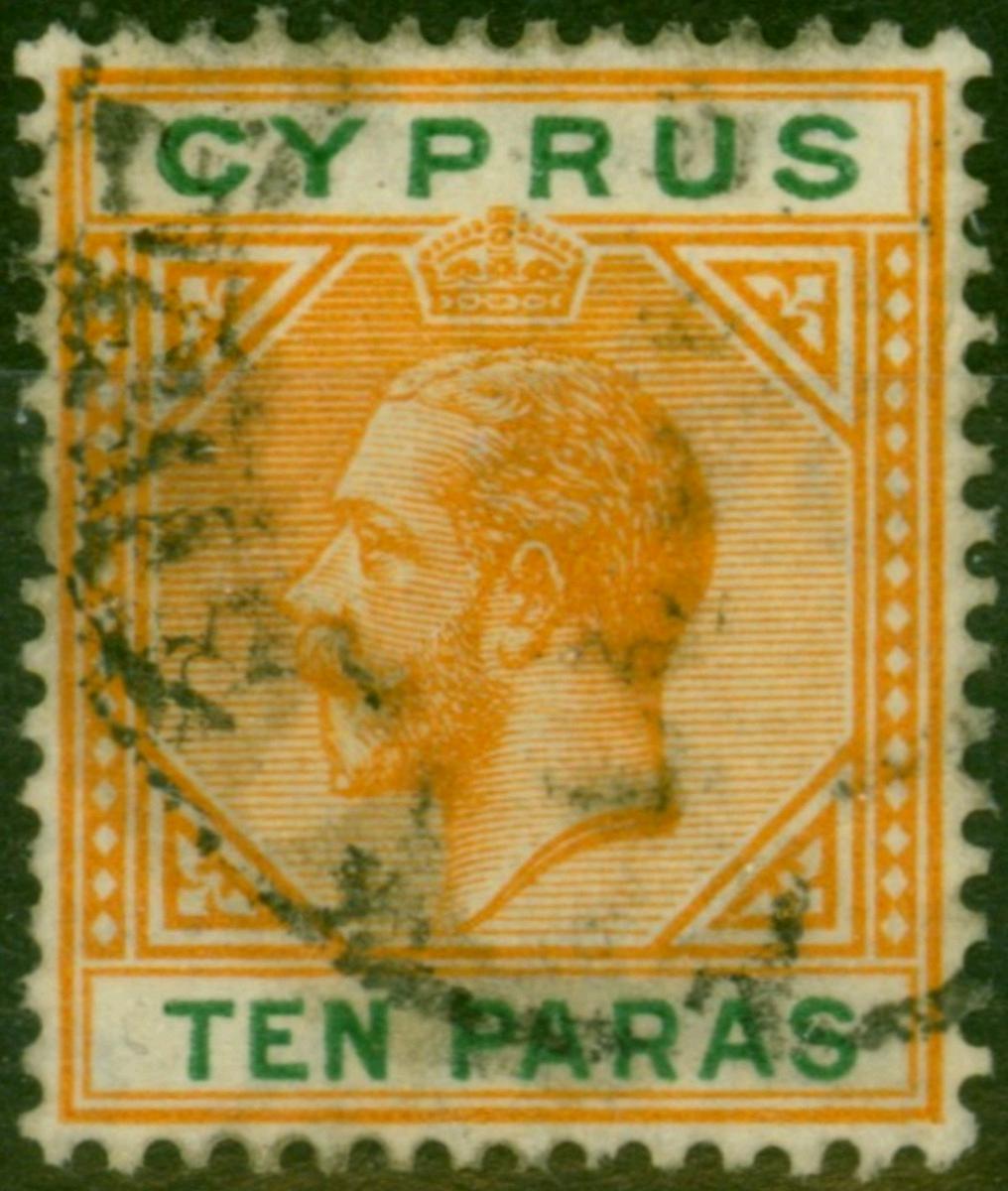 Cyprus 1912 10pa Orange & Green SG74a 'Wmk Sideways' Fine Used Rare