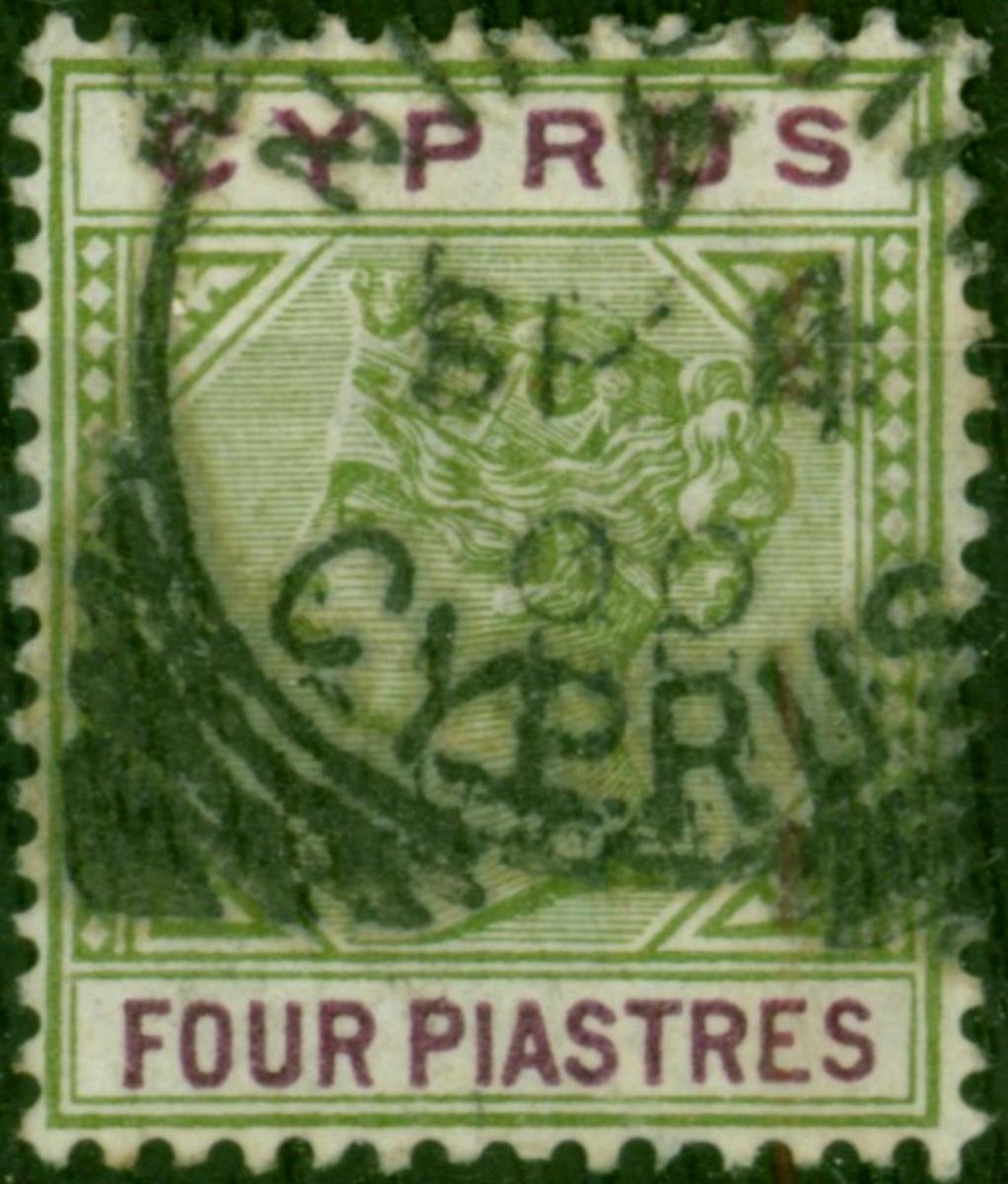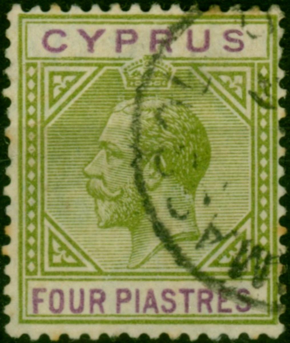 Cyprus 1921 4pi Olive-Green & Purple SG95 Fine Used (2)