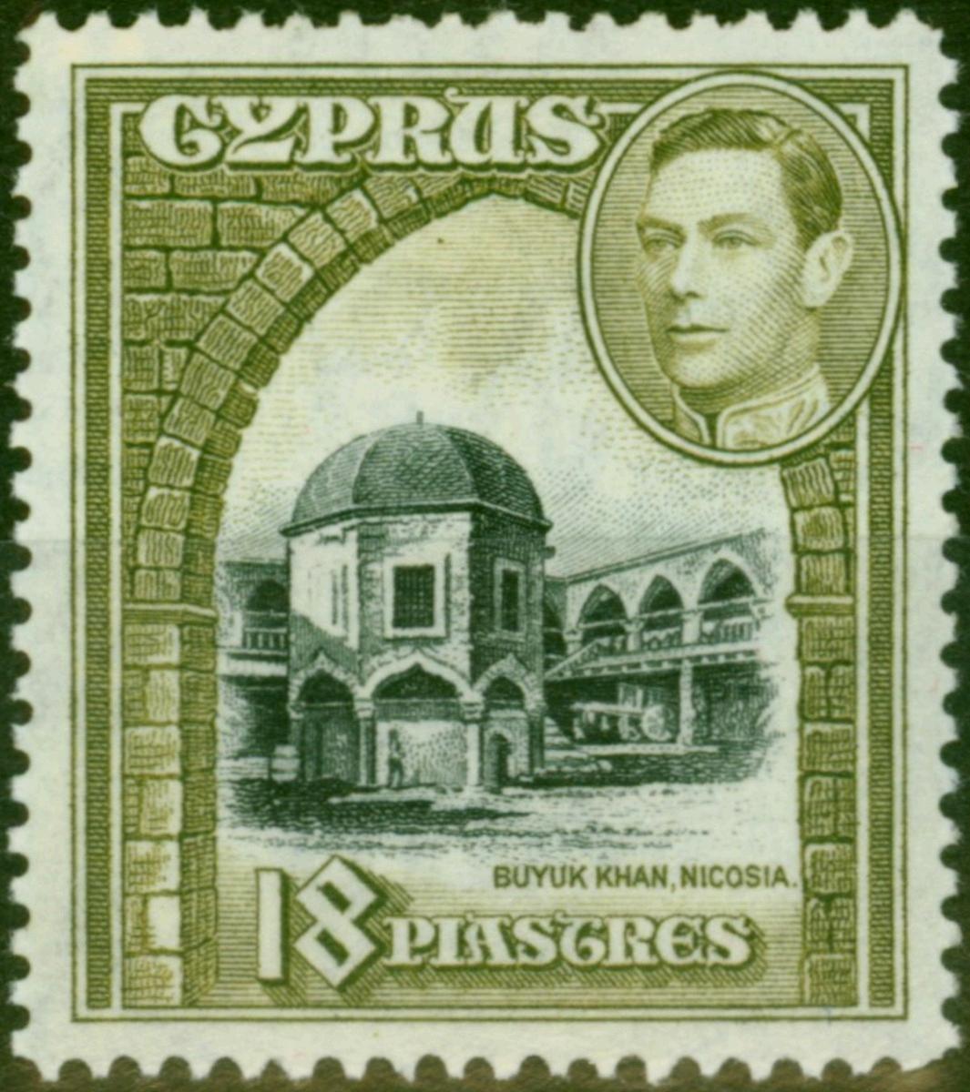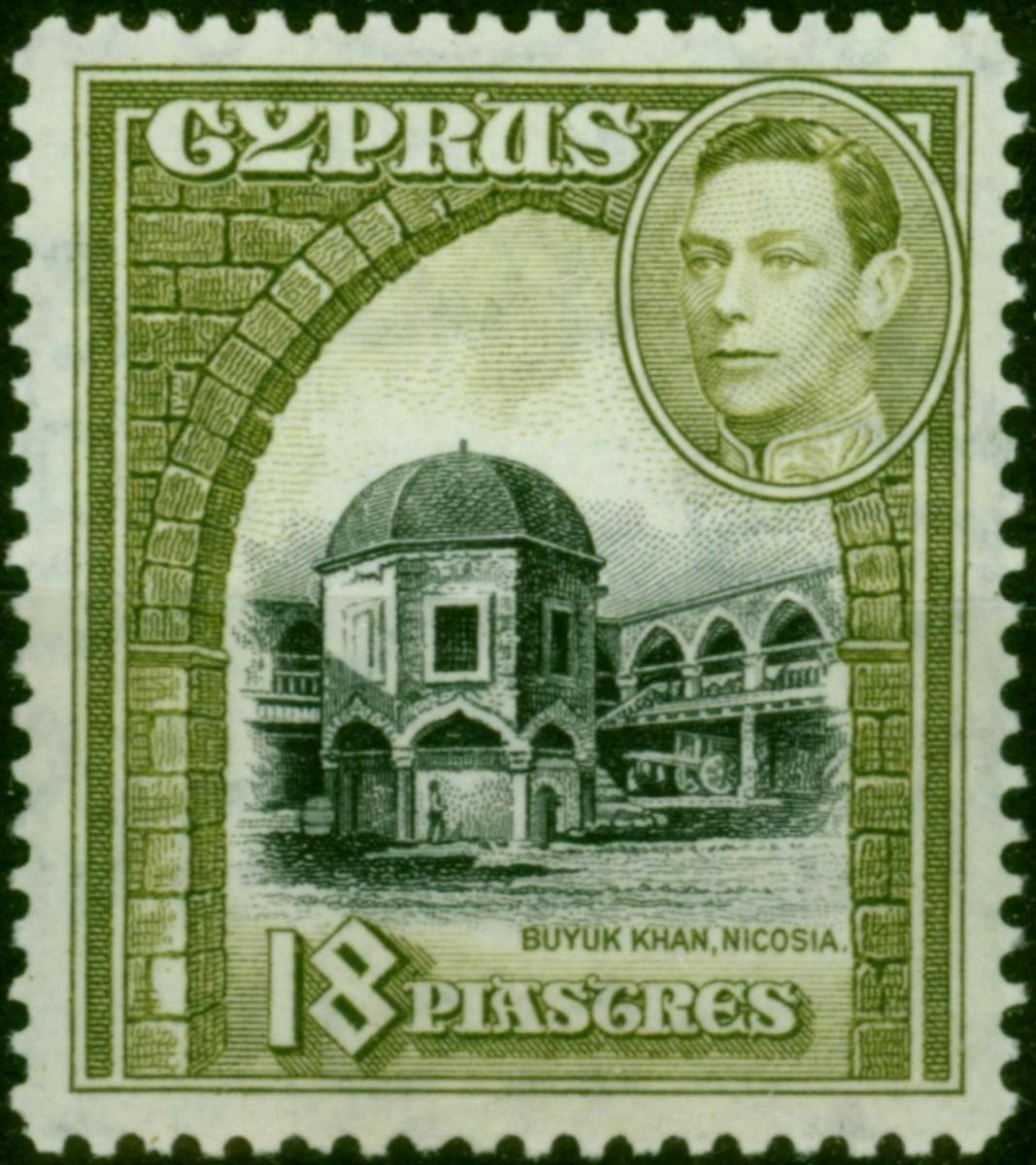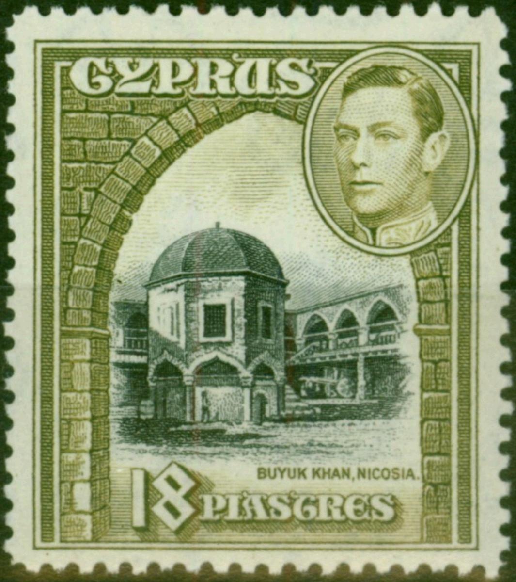 Cyprus 1938 18pi Black & OliveGreen SG160 Fine MM (2)