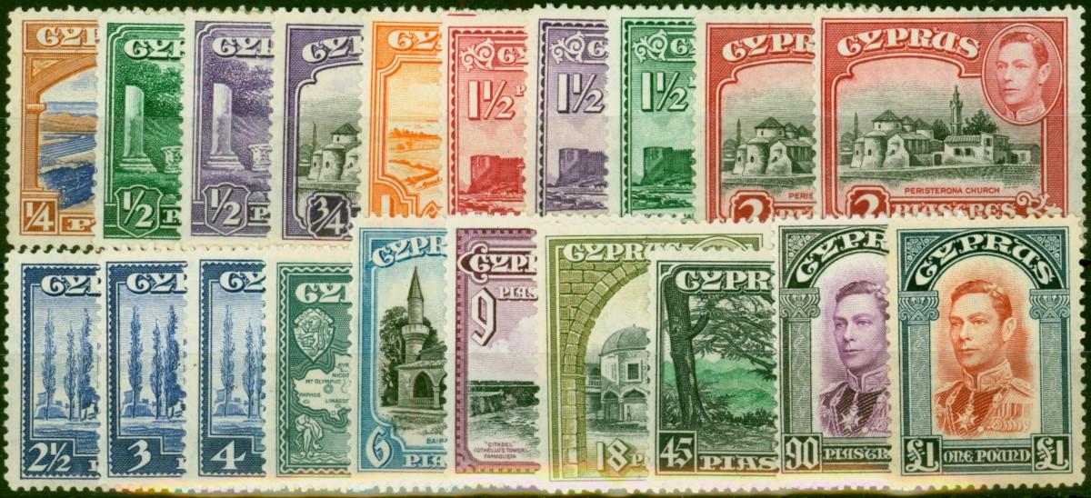Cyprus 1947 18pi Black & SageGreen SG160a Fine LMM (3)