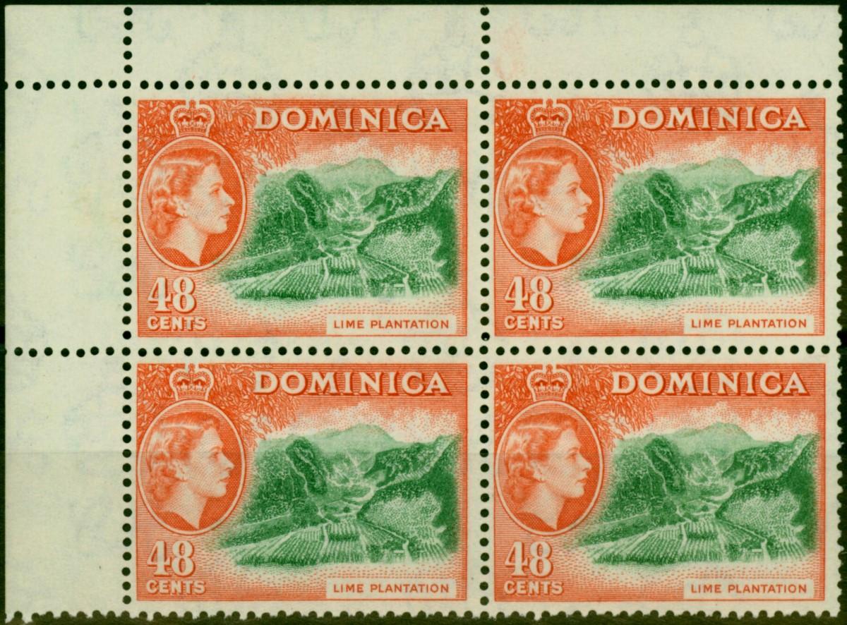 Dominica 1954 48c Green & RedOrange SG154 V.F MNH Corner Block of 4