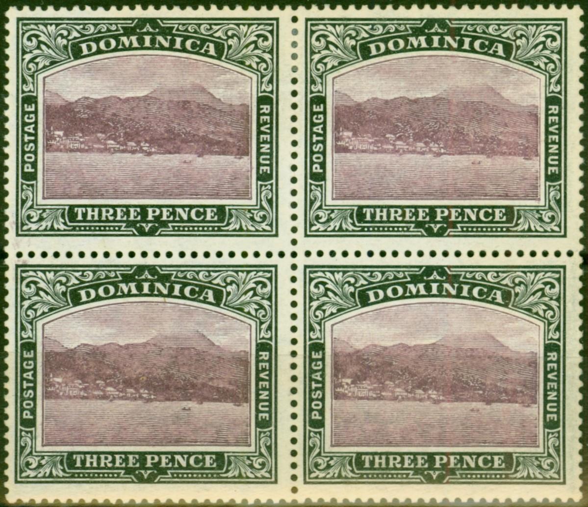 Dominica 1907 3d Dull Purple & Grey-Black SG41 V.F LMM Block of 4