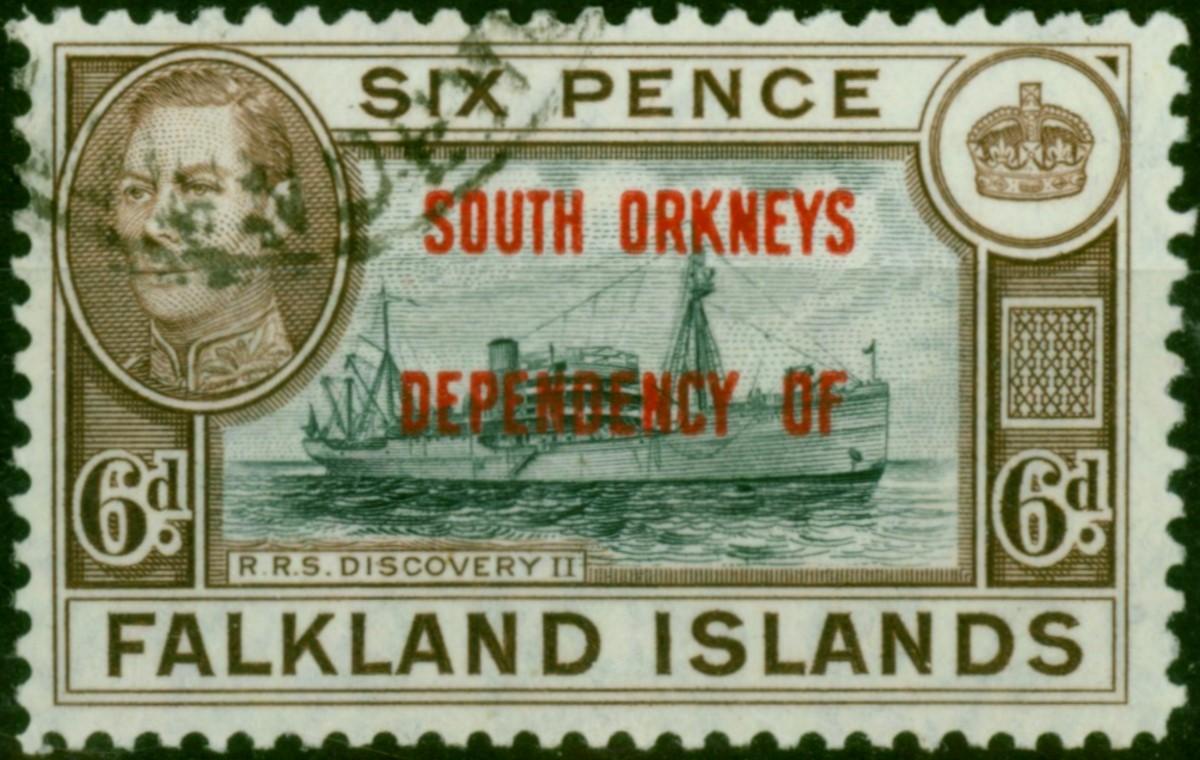 South Orkneys 1945 6d Blue-Black & Brown SGC6a Fine Used Dubious Cancel Sold 'As Is'