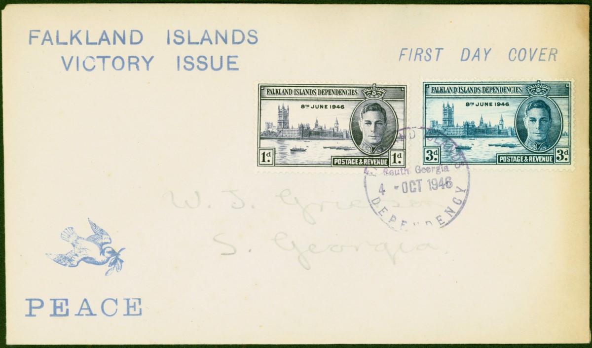 Falkland Is Dep 1946 Victory Set on Illustrated 1st Day Cover 'South Georgia 4 OCT 1946' CDS