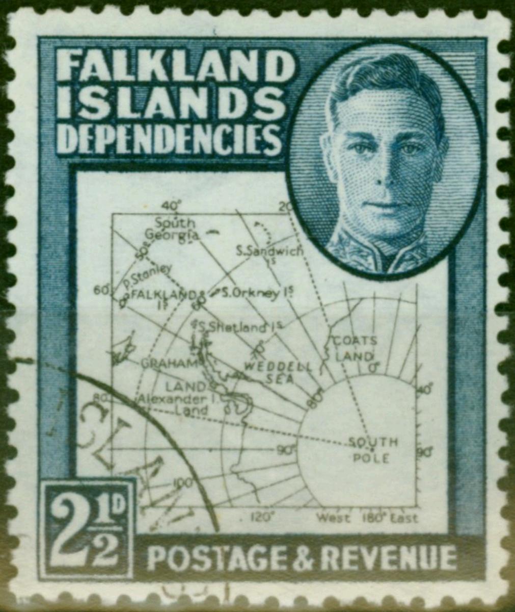 Falkland Islands Dep 1948 2 1/2d Black & Grey-Blue SGG11b V.F.U (2)