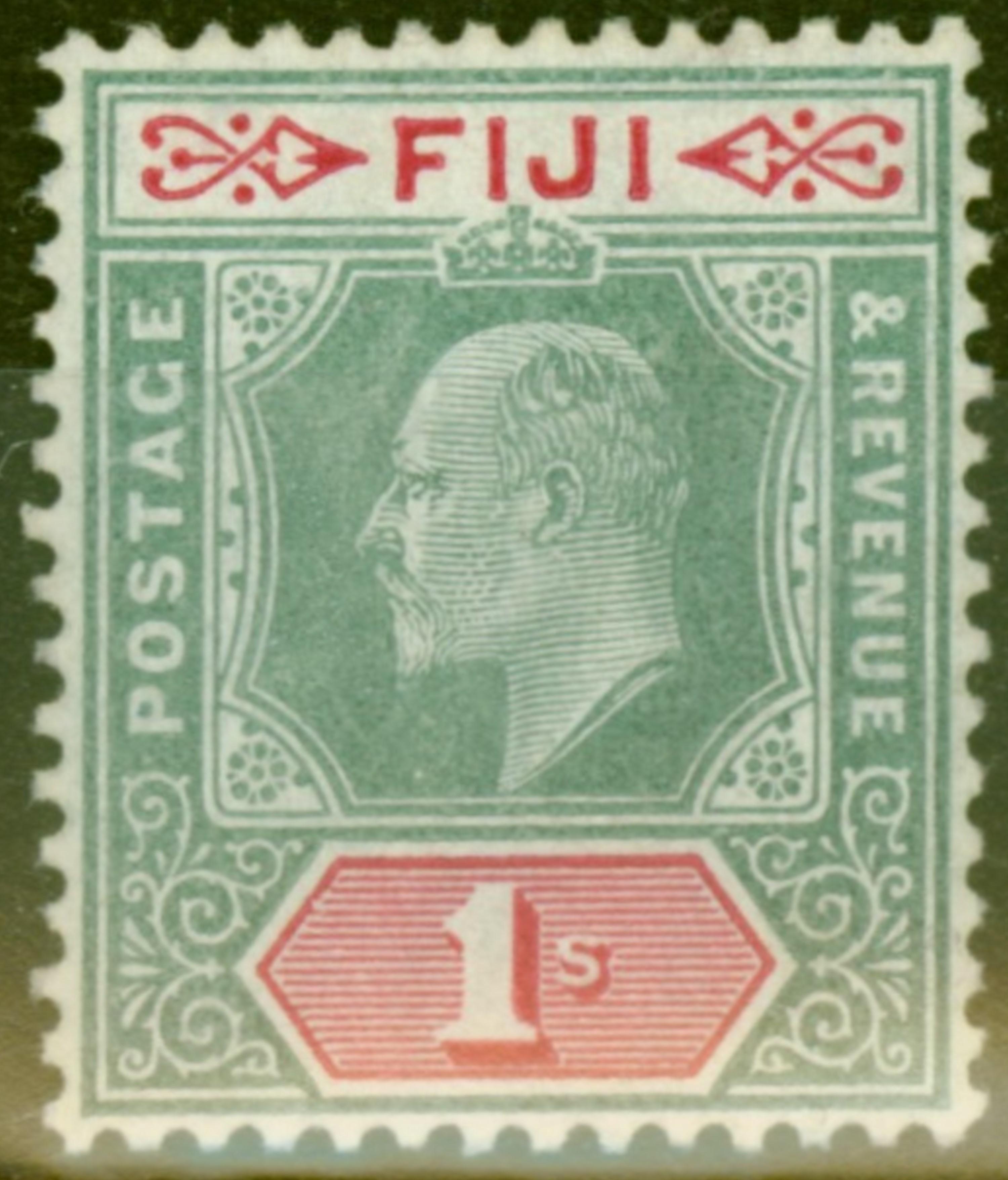 Fiji 1909 1s GReen & Carmine SG117 Fine Lightly Mtd Mint