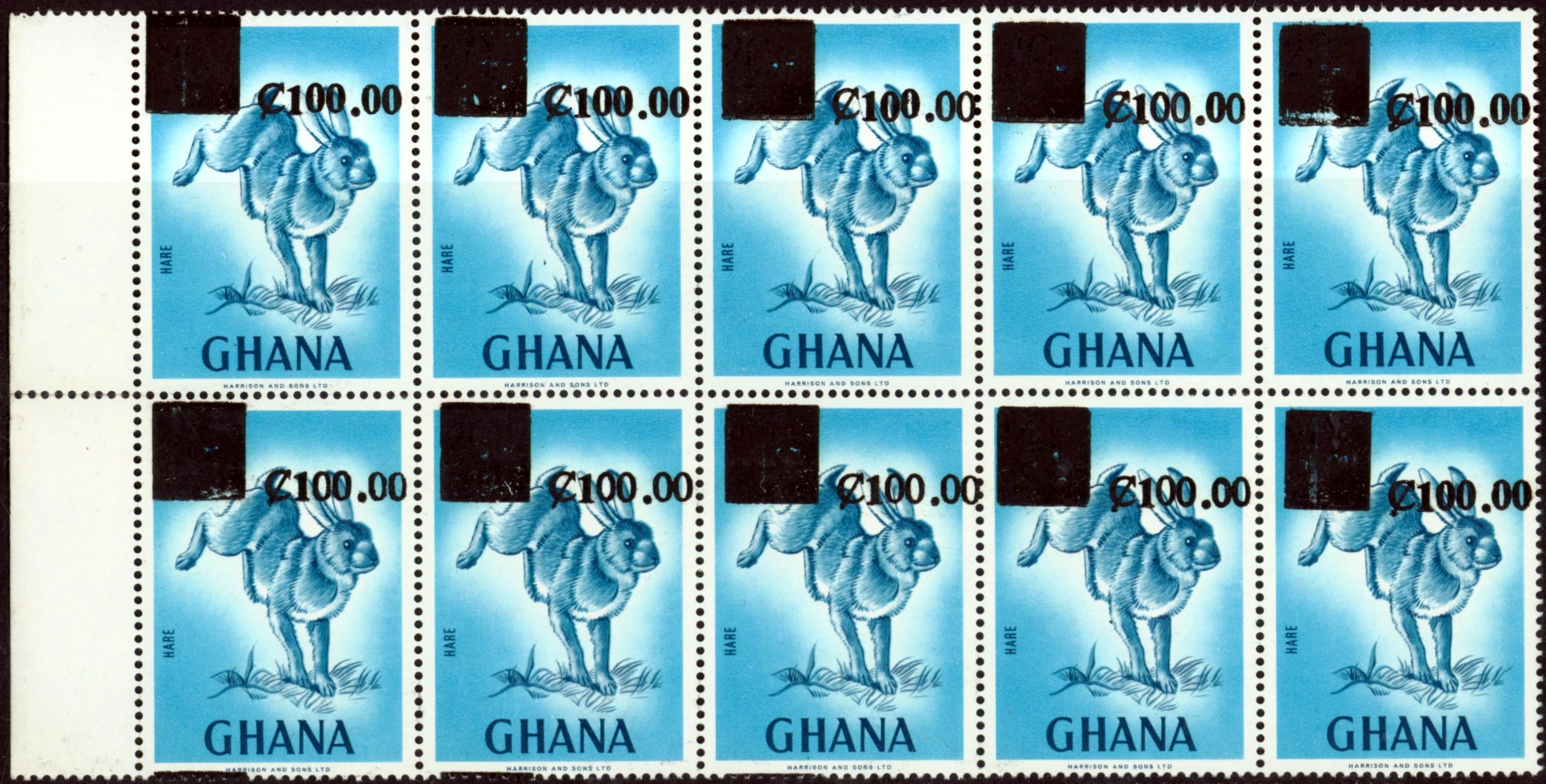 Ghana 1988 100c on 20np Dp Blue & Blue SG1261 V.F MNH Block of 10