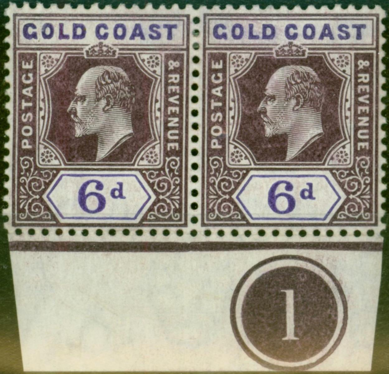Gold Coast 1906 6d Dull Purple & Violet SG54 V.F VLMM Pl. 1 Pair