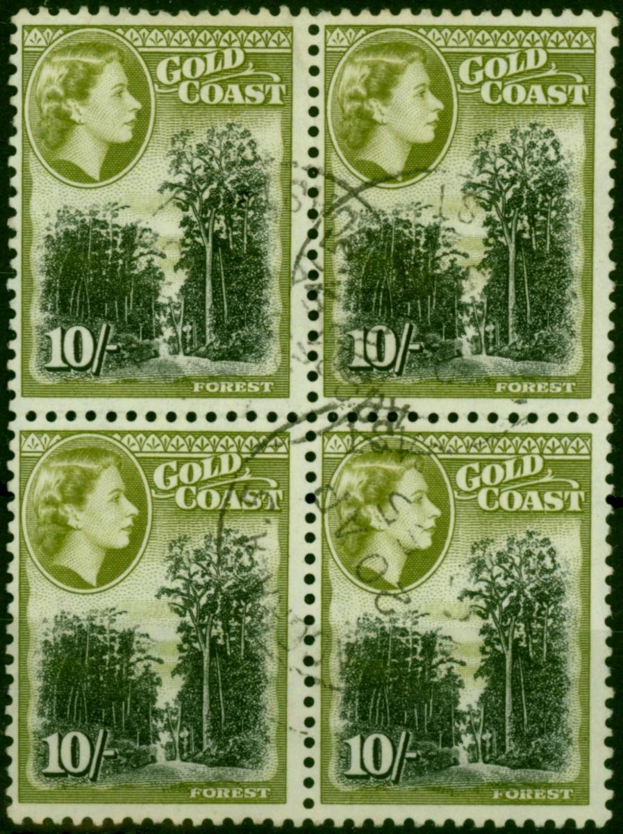 Gold Coast 1954 10s Black & OliveGreen SG164 V.F.U Block of 4