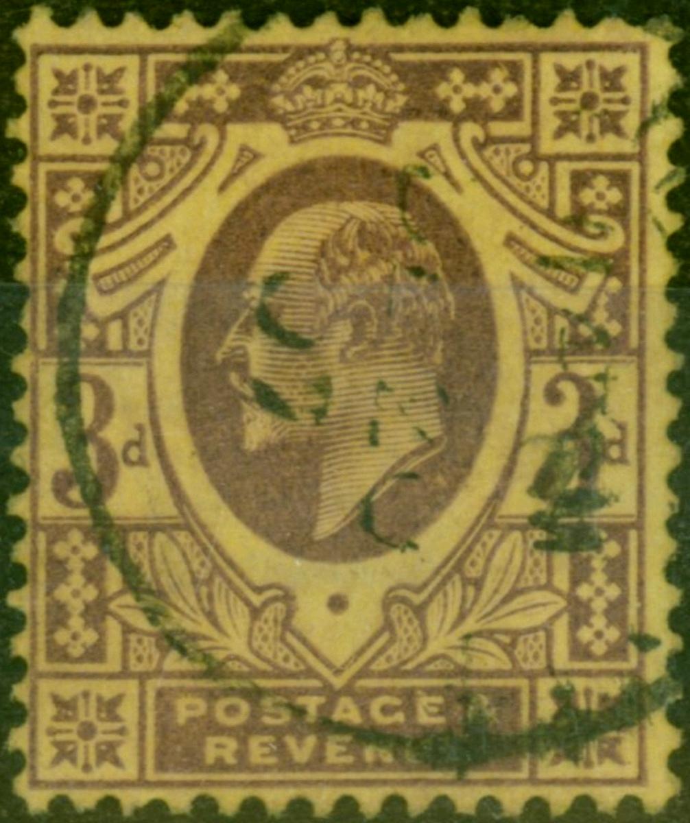 GB 1902 3d Dull Reddish PurpleYellow Lemon Back SG233 Fine Used