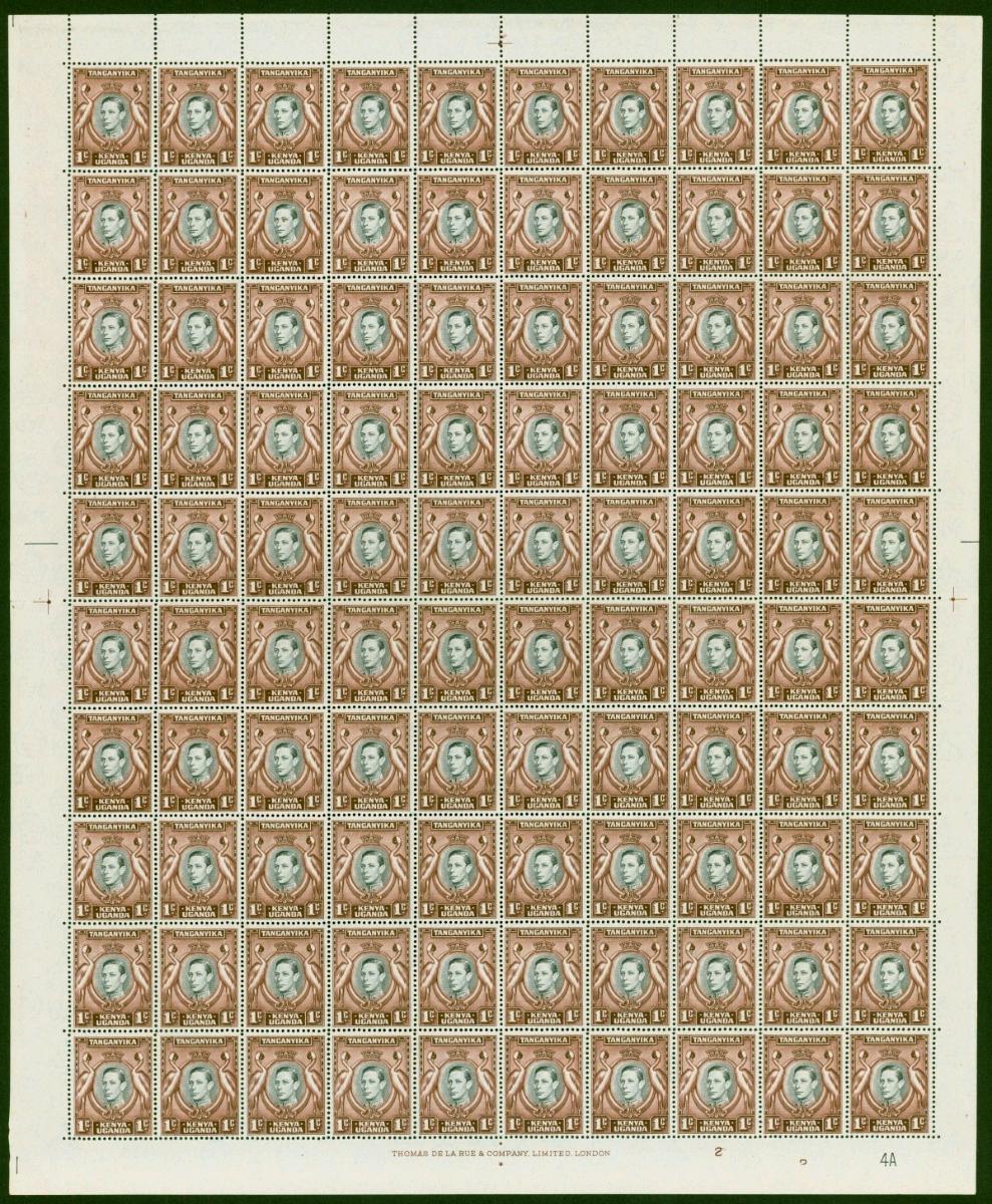 KUT 1942 1c Complete Sheet of 100 Pl. 2 4a 'Retouched & Break in Breast' SG131ad & SG131ae V.F MNH