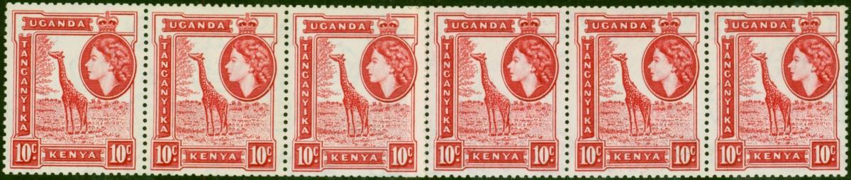 KUT 1954 10c Carmine-Red SG168 Fine MNH Coil Join Strip of 6