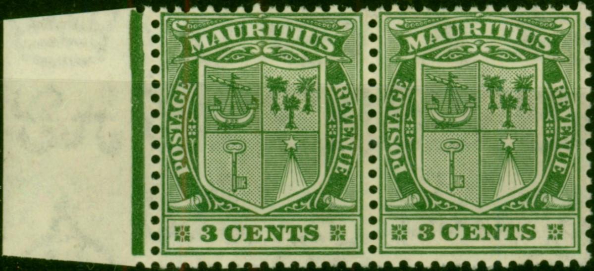 Mauritius 1926 3c Green SG208 Fine MNH Pair